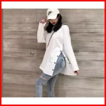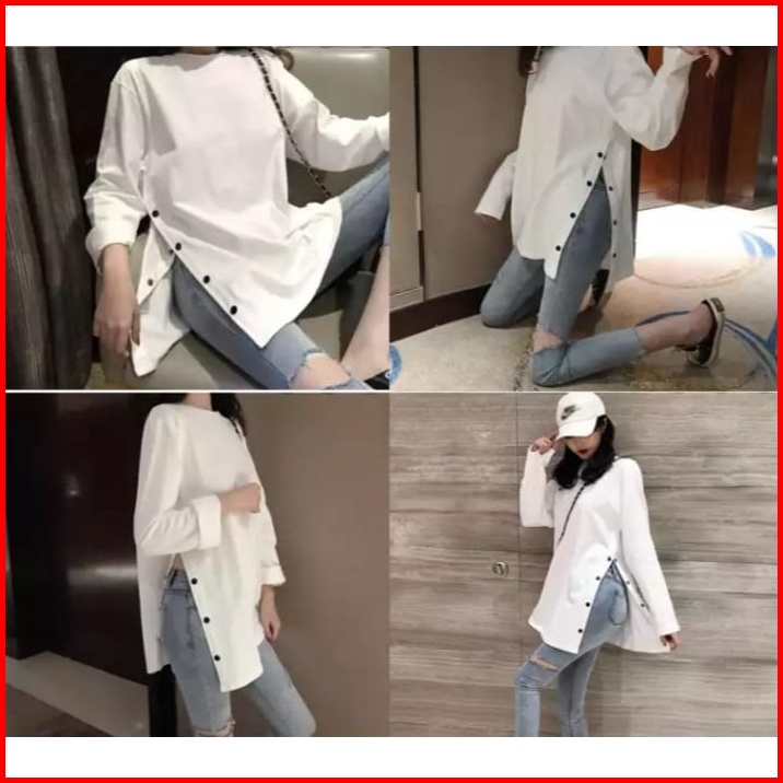 New Kaos Distro Korean Style Kpop Motif Belah Lengan Panjang Kece Trendy Kaos Korean Style Kpop Hitam Putih Polos Keren