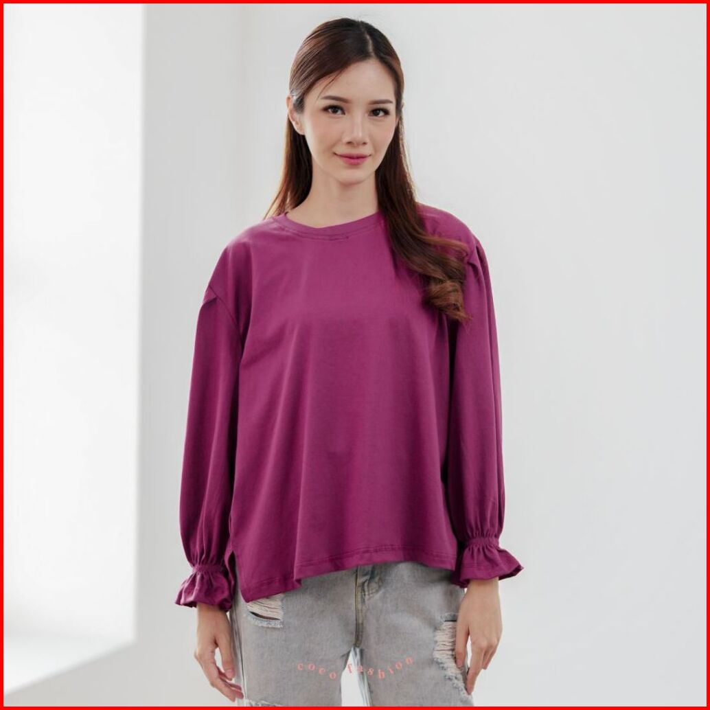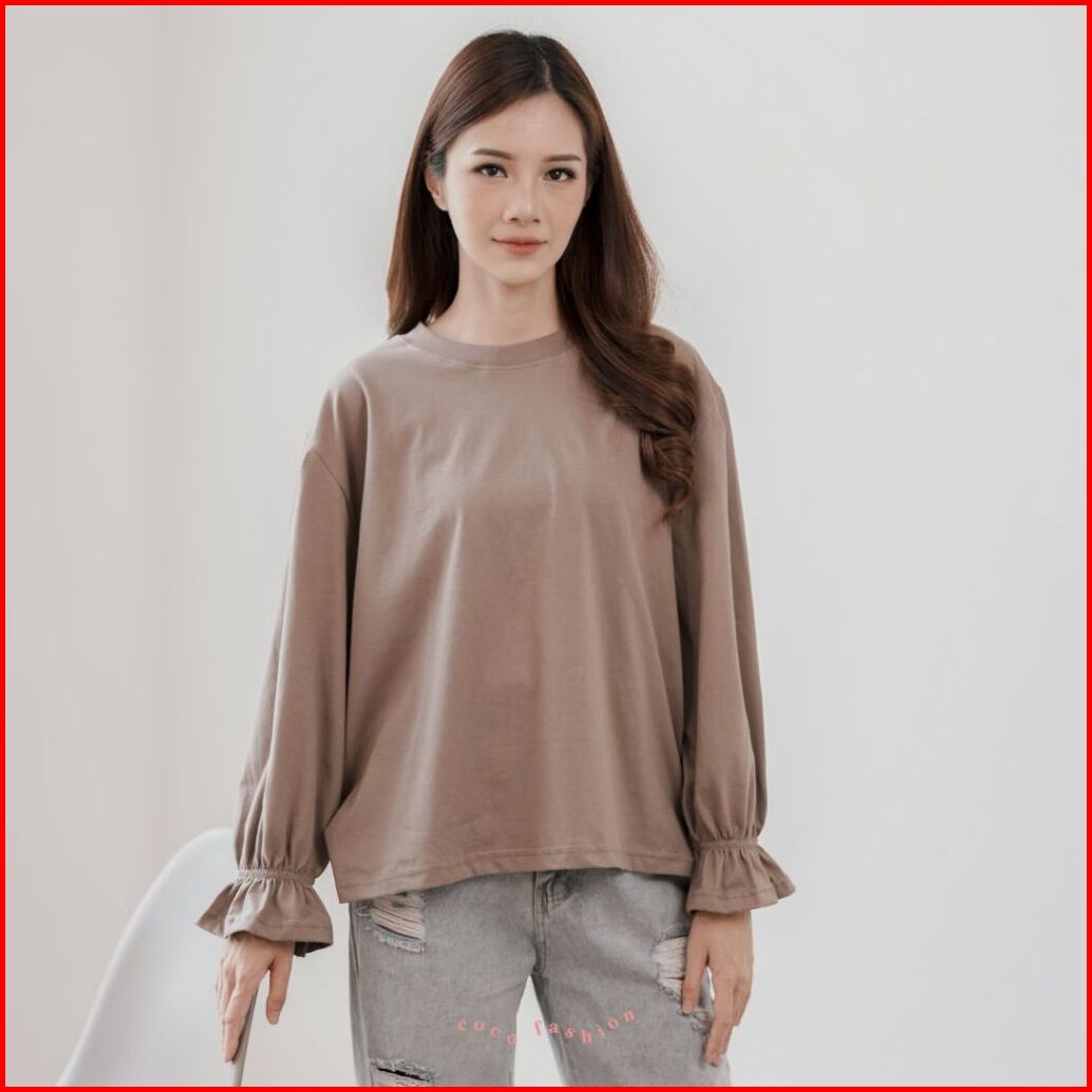 Atasan Wanita Kaos Lengan Panjang Anya Top Hijab Baju Katun Combed Oversize Premium Basic Polos