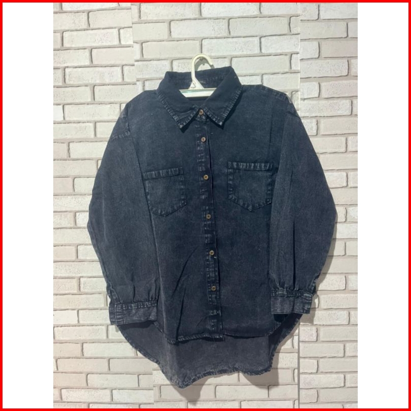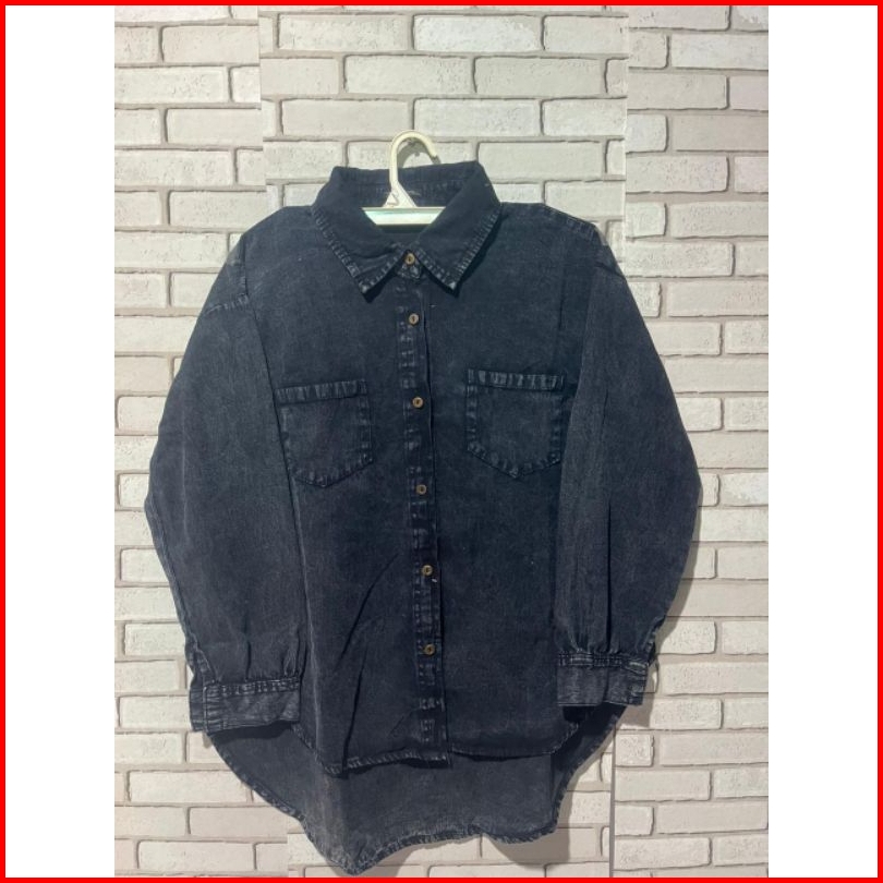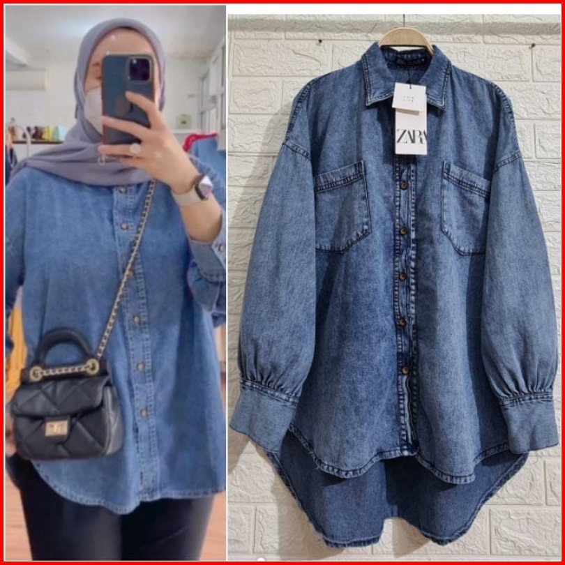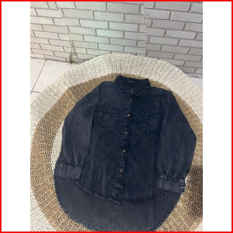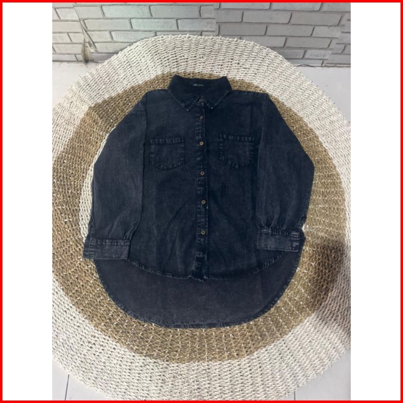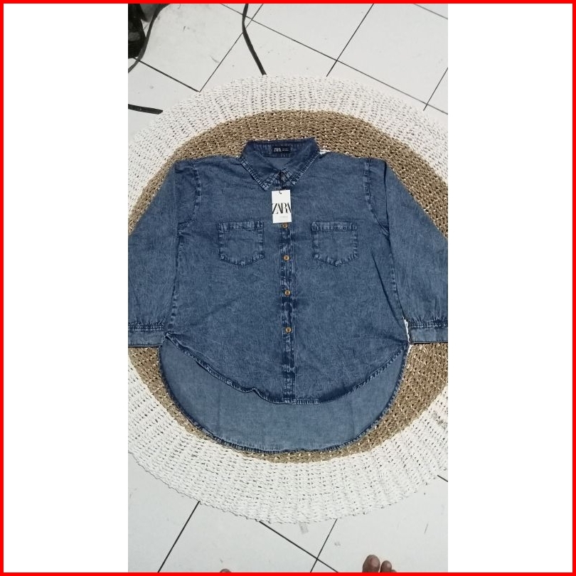 Atasan Zara Wanita Jeans Oversize Premium Lingkaran Dada 120 Lengan Kancing Dan Kantong Depan.
