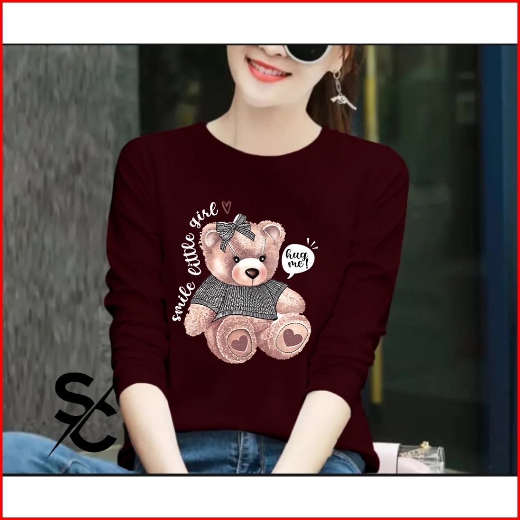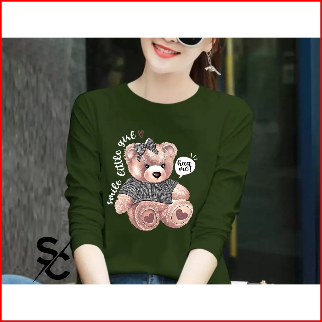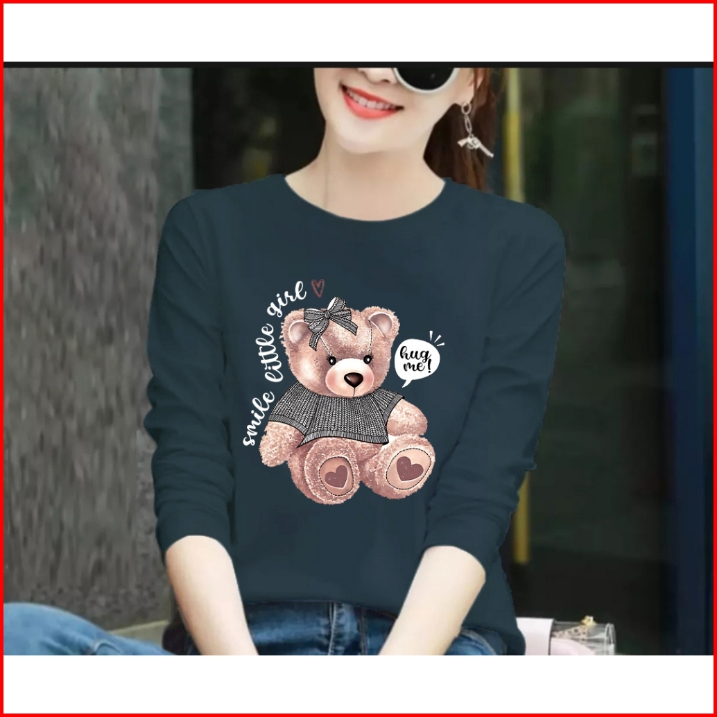 Kaos Hugme Bear Kaos Distro Wanita Lengan Panjang Cotton Combed 24s Basic T-shirt Terbaru