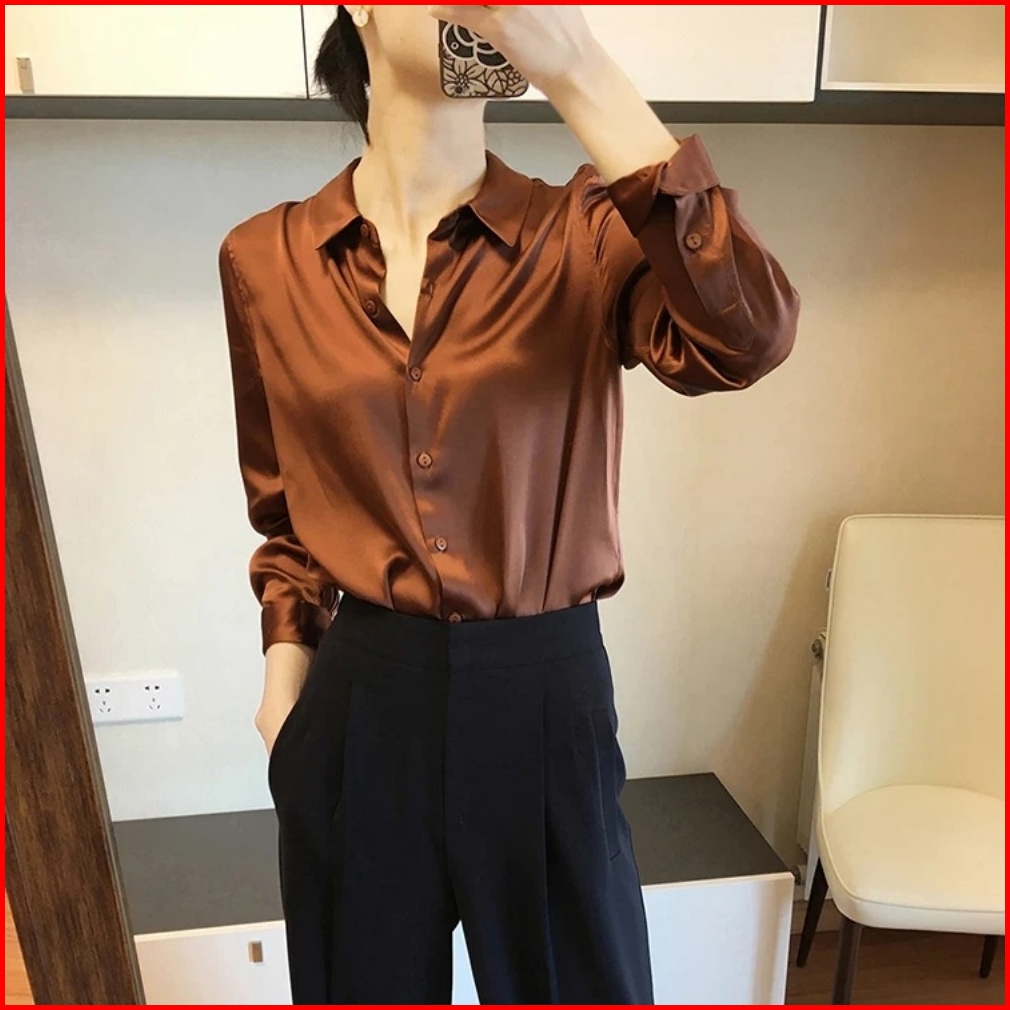 Atasan Kemeja Adella Silk Satin Import -2520 Tm
