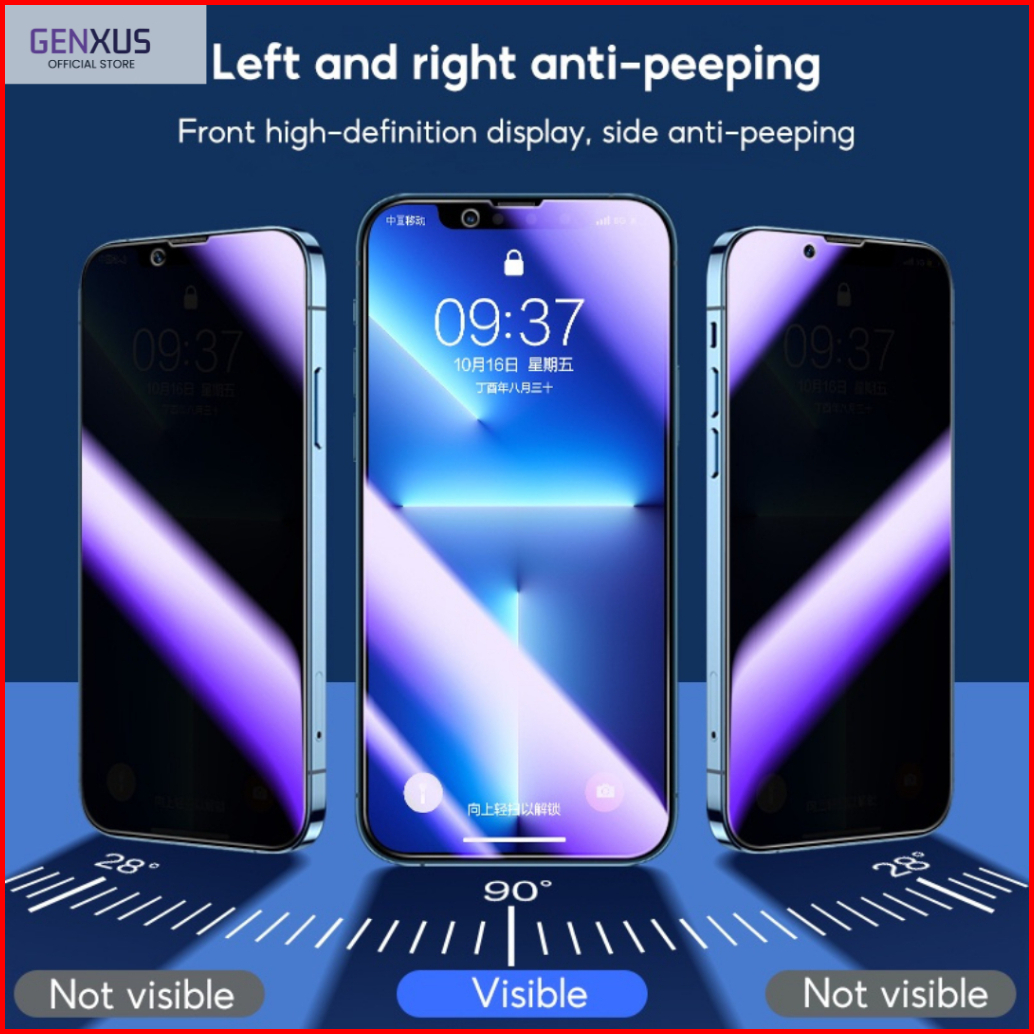 Genxus Anti Spy Anti Gores Tempered Glass Full Screen For Iphone 14 Plus Pelindung Layar Handphone Antigores Anti Privac