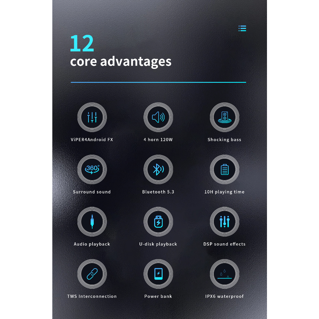 XDOBO Beast 1982 120W Wireless Bluetooth 5.3 Speakers Deep Bass Outdoor Indoor Speakers