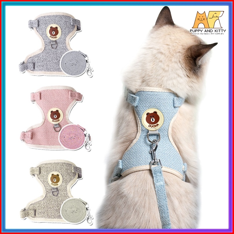 Kucing Kelinci Hewan Kecil Pola Beruang Lucu Harness Harness Hewan Peliharaan Dengan Tali Untuk Anjing