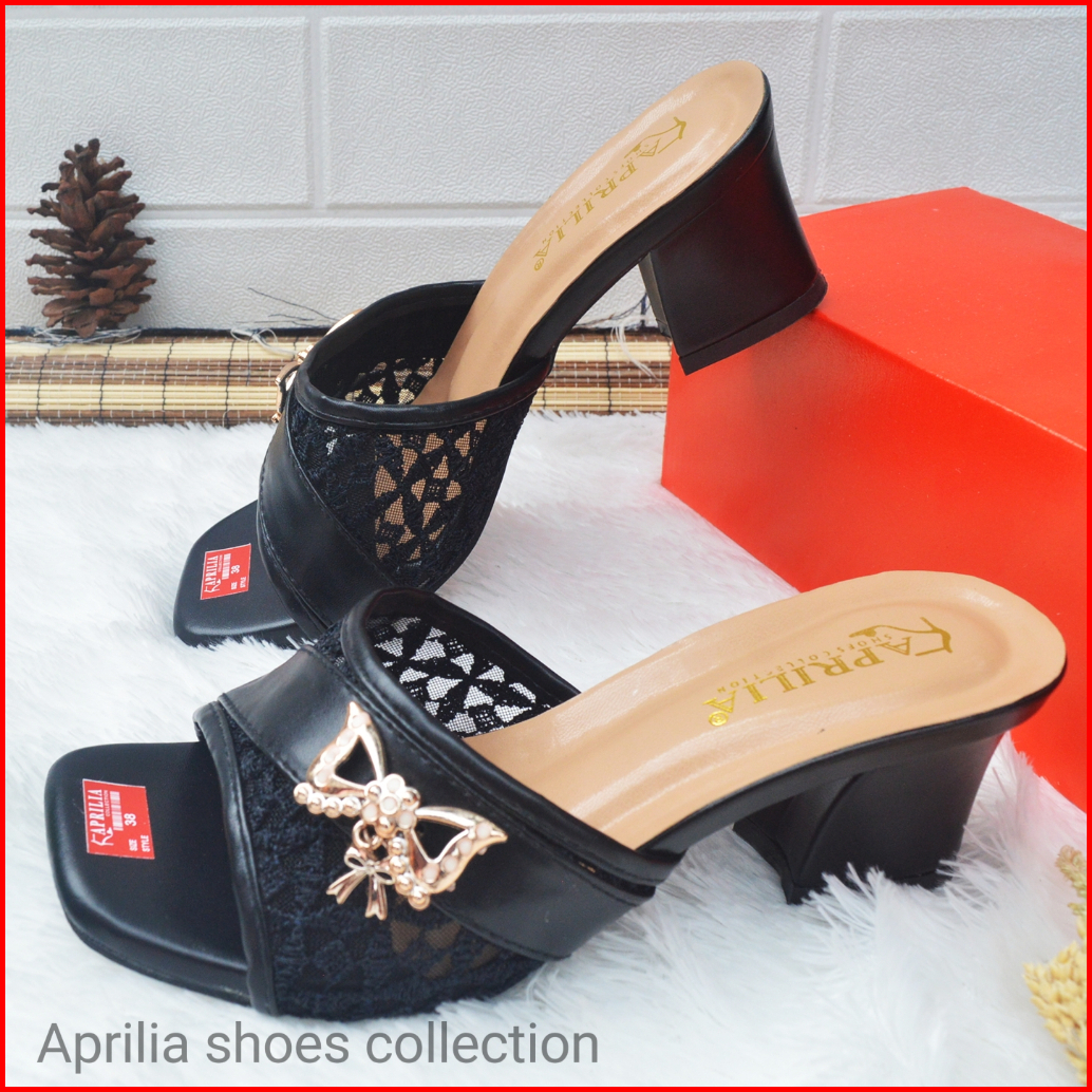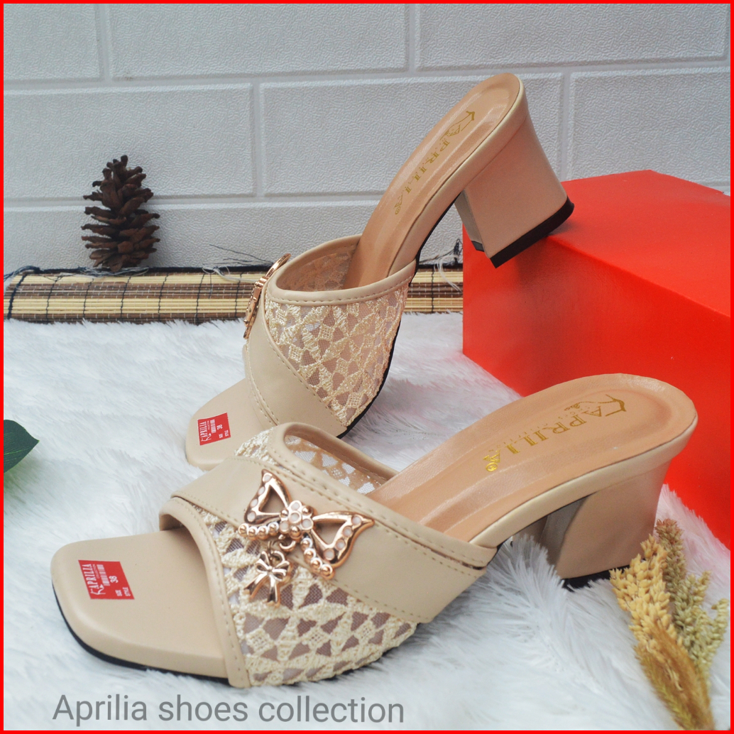 Aprilia Sandal Wanita Pesta Terbaru Hak Tahu 5cm Rs-02 Selop Brukat Formal Kondangan Kerja Aprilia Collection Heels Pest