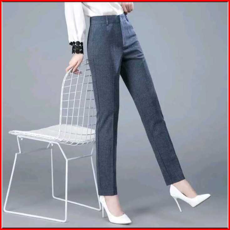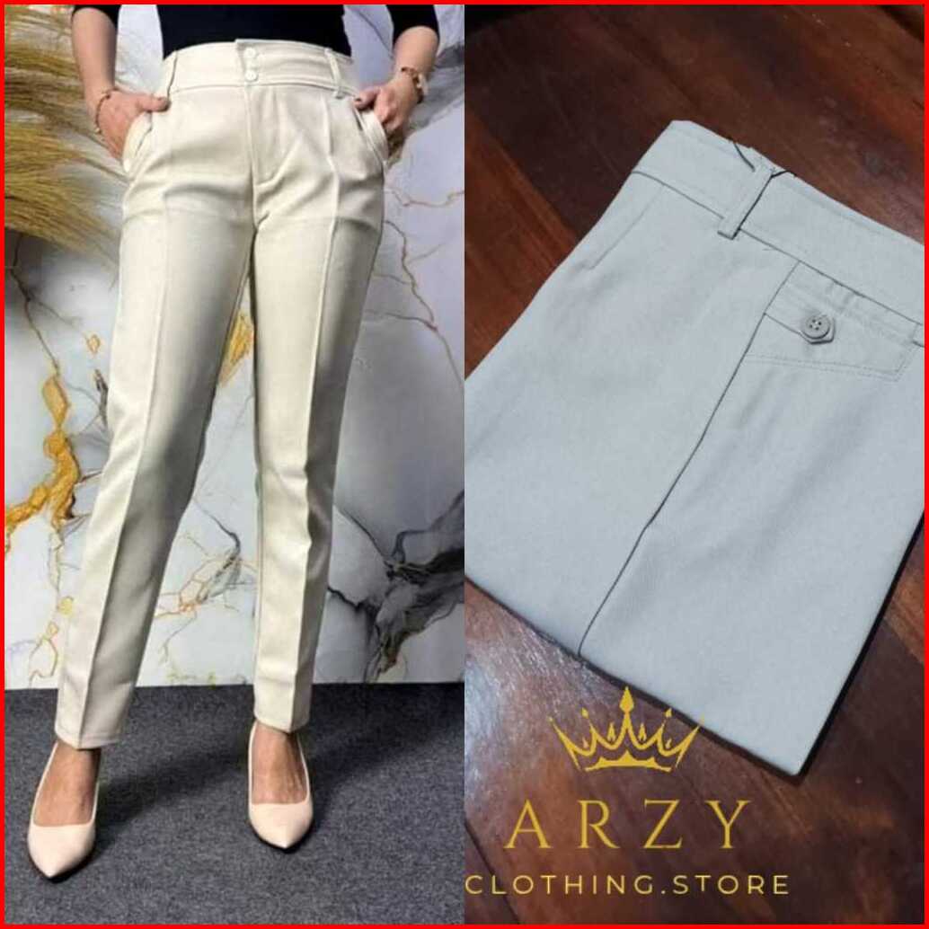 Celana Kerja Wanita Kantor Celana Kain Anti Kusut Model Resleting Kancing Bahan Semiwoll Premium