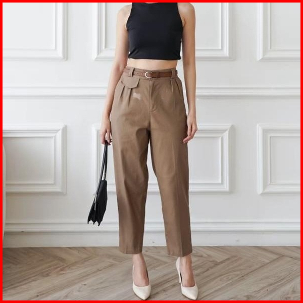 Aiko - Basic Pants Highwaist - Celana Baggy - Angkle Pants - Celana Kantor - Loose Pants