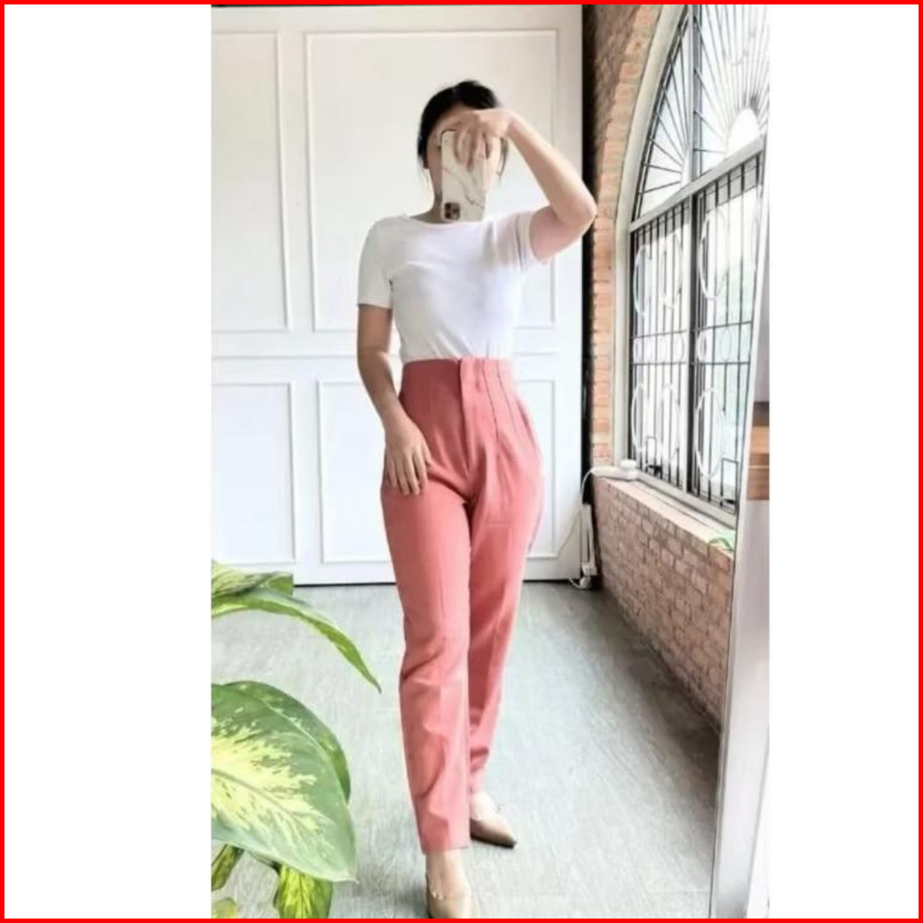 Celana Panjang Wanita Aerum Higwaist Scuba Celana Kerja Wanita Pensil Slim Saku Paspol Baggy Pants
