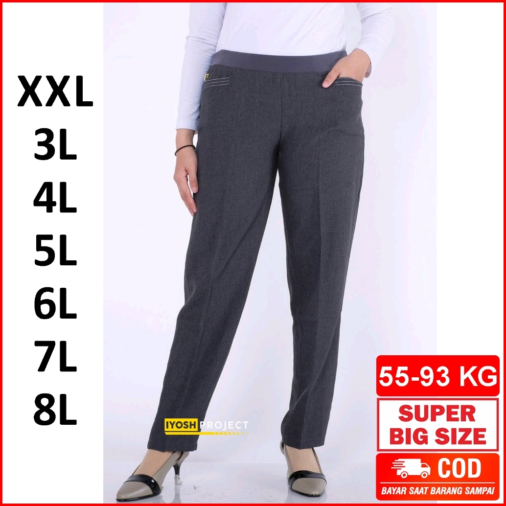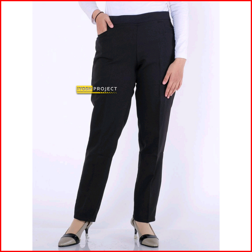 Celana Kerja Wanita Jumbo Slimfit Bahan Semi Wool Premium Pinggang Karet Bb 4095 Kg