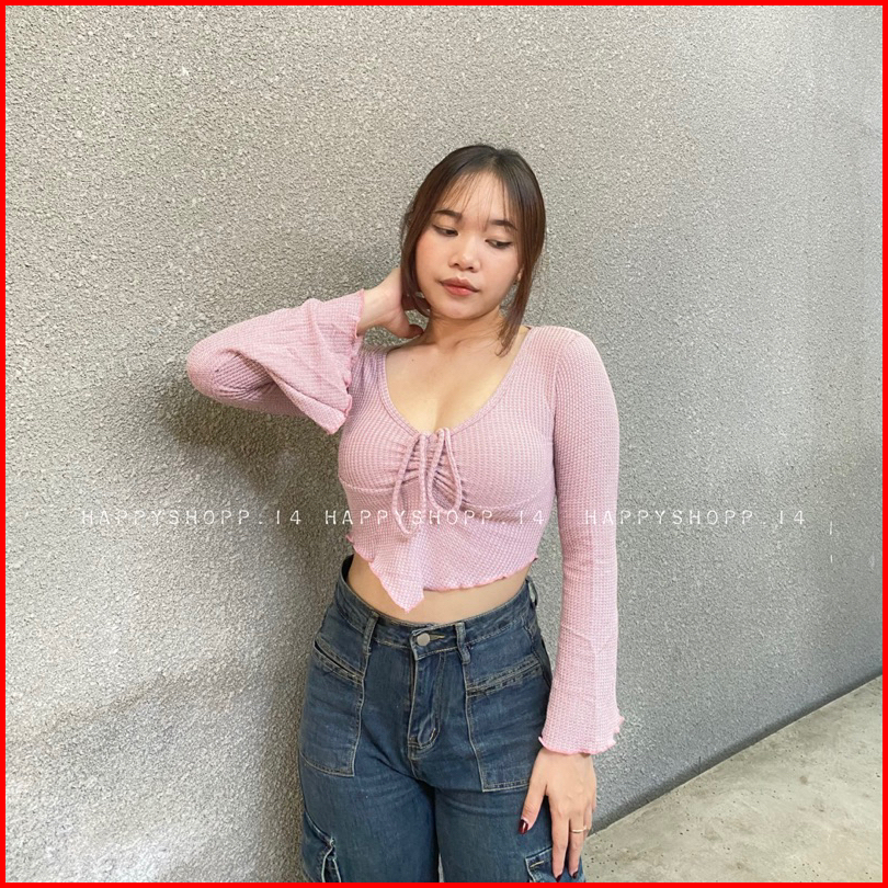 Readystock Nebula Top Jumbo Waffle Top Lengan Panjang Cerry Top Waffle Blouse Lengan Panjang Wanita Atasan Wanita Terbar