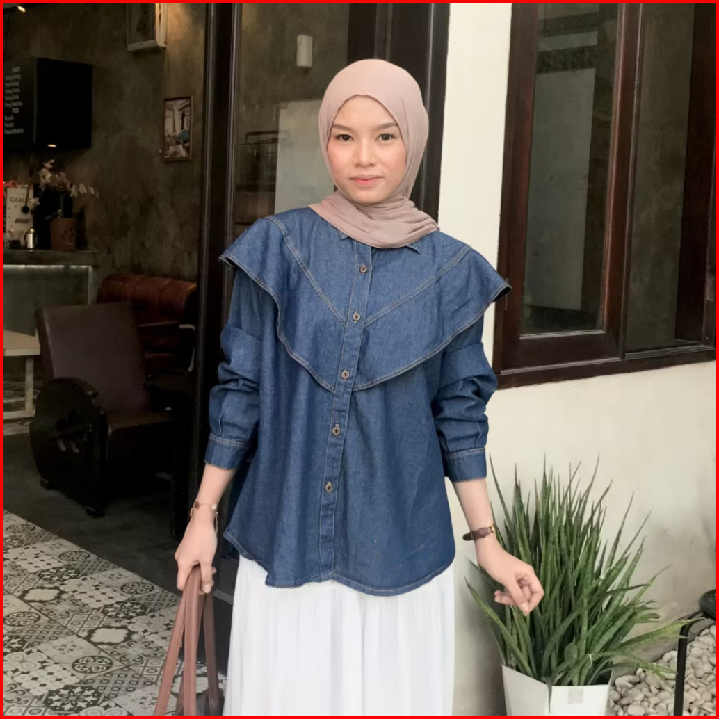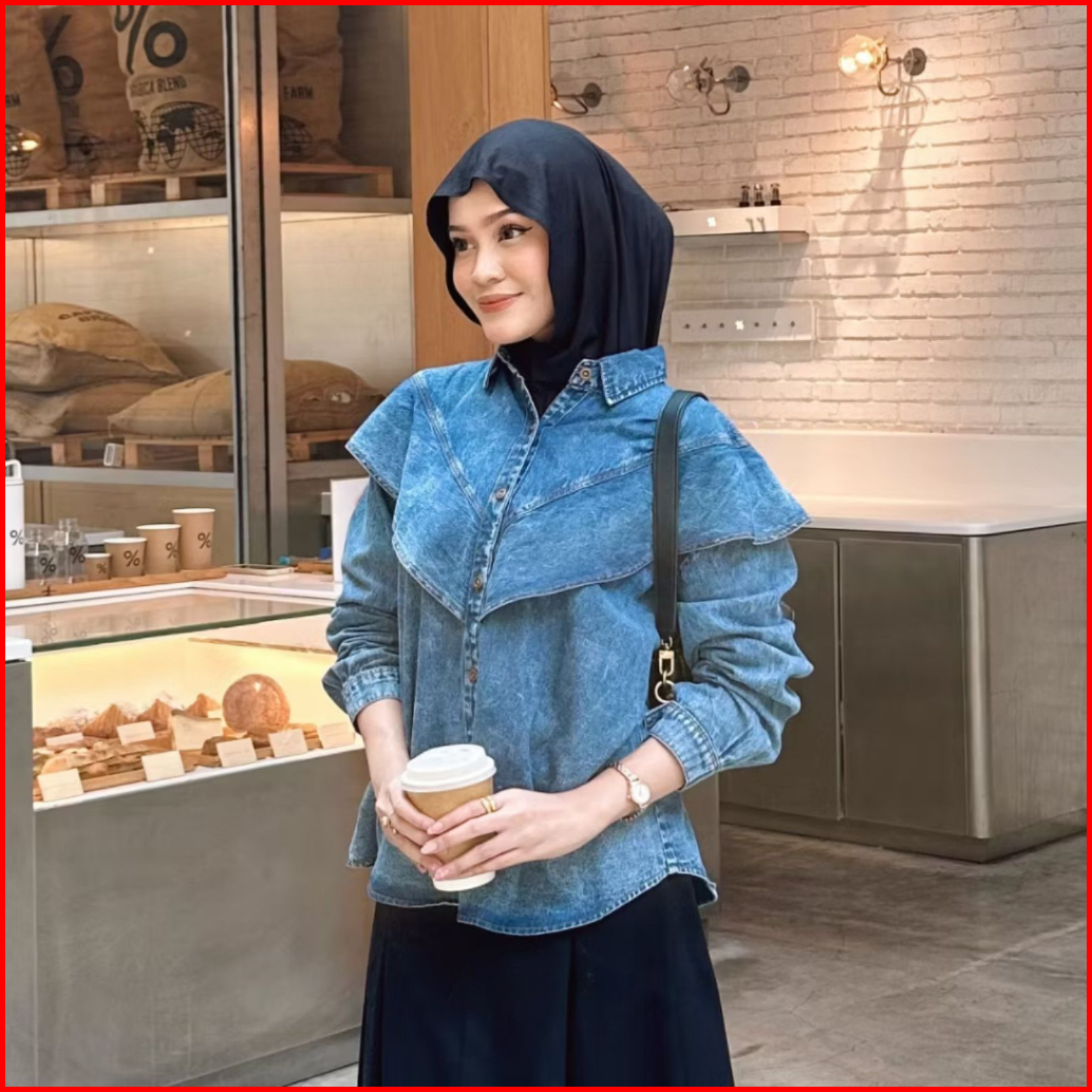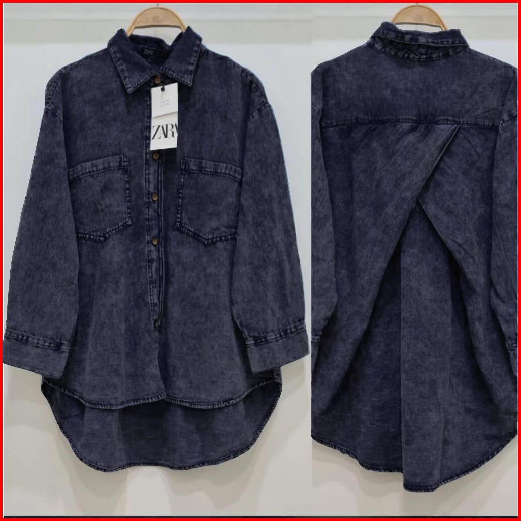 Kemeja Jeans Wanita Oversize Silang Snowblue Ld 100-120 Kemeja Jeans Wanita Kekinian