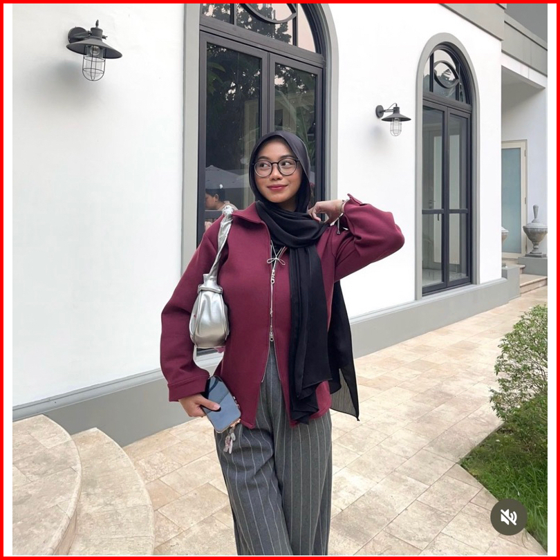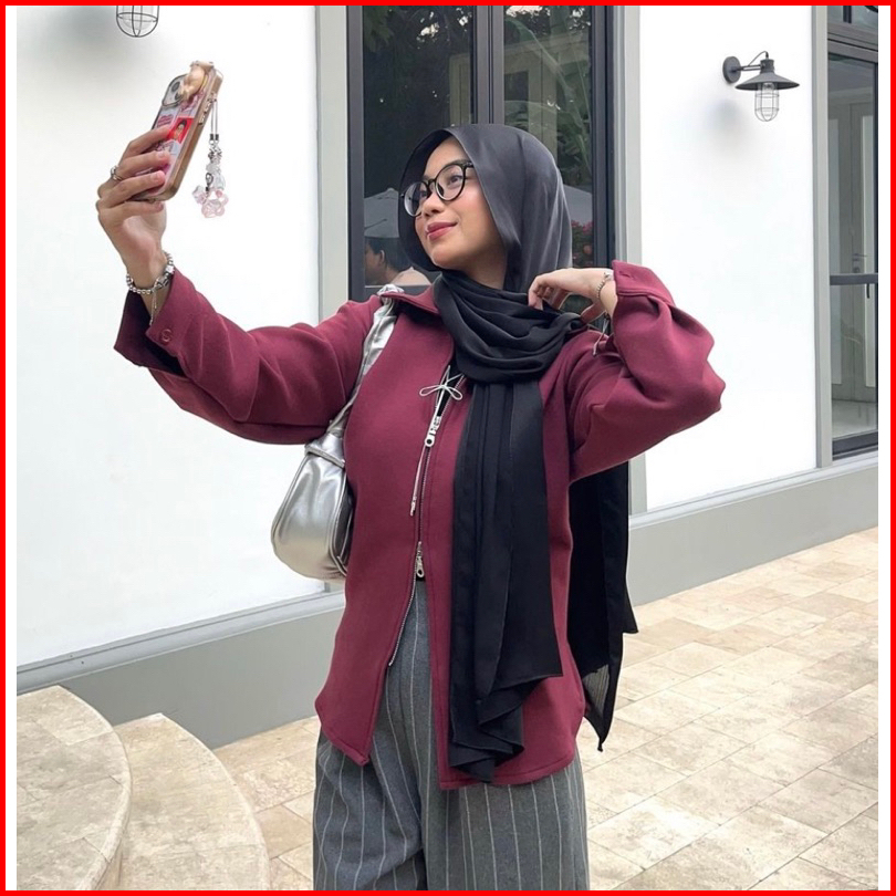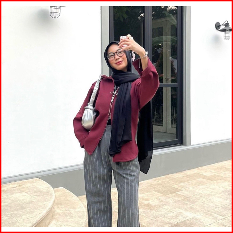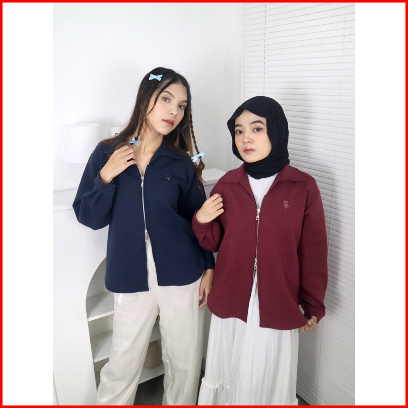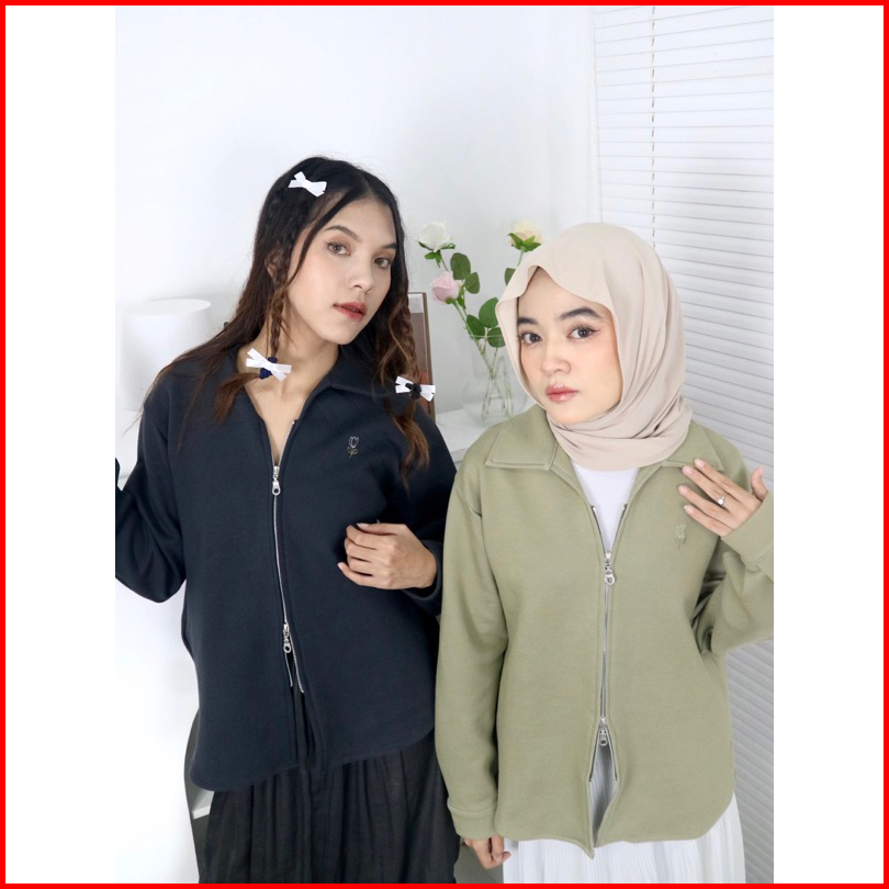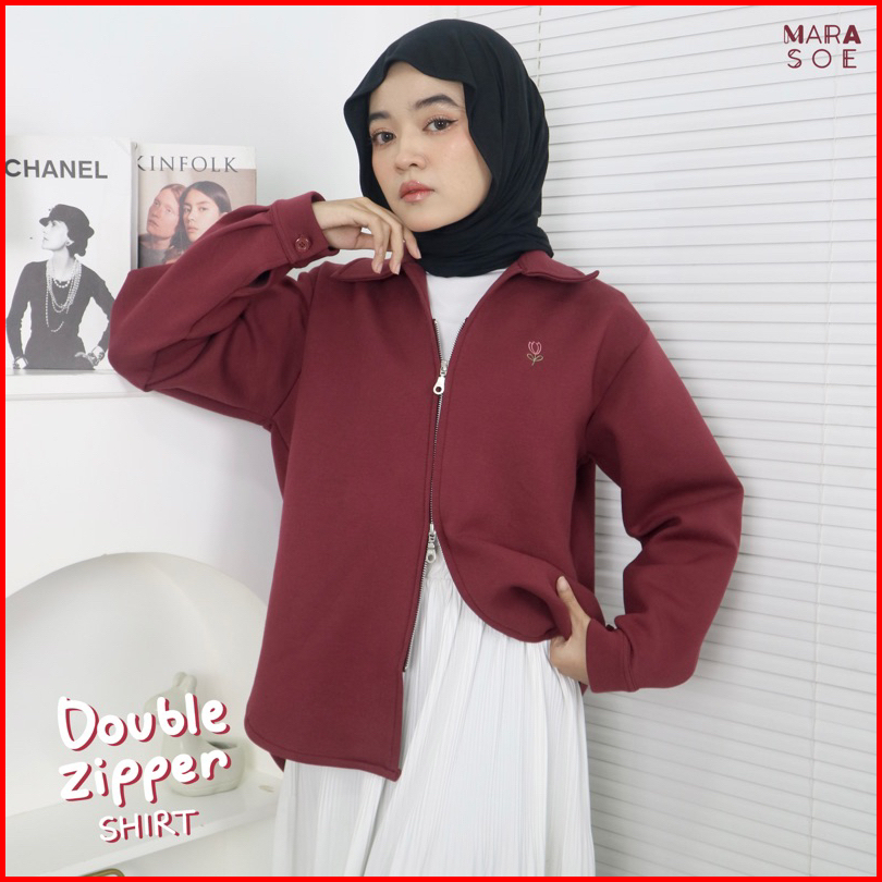 Marasoe Double Zipper Shirt - Double Zipper Knit Double Zip Hoodie Kemeja Wanita Formal Casual Elegan Korean Style - Kem