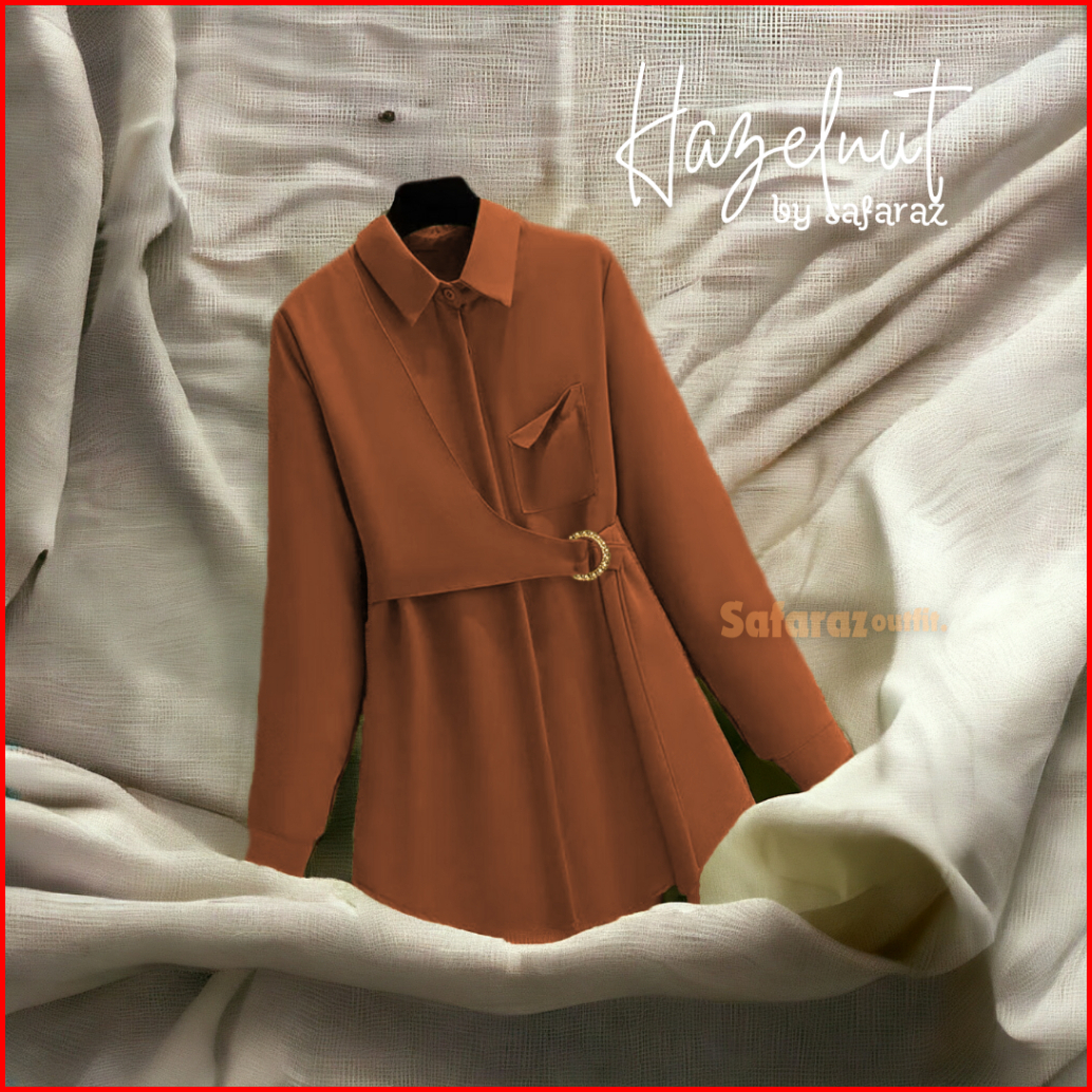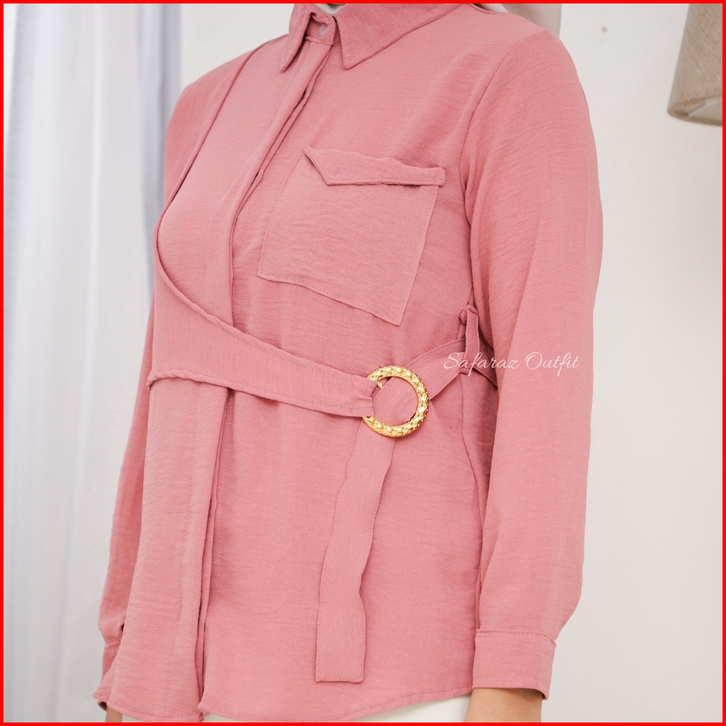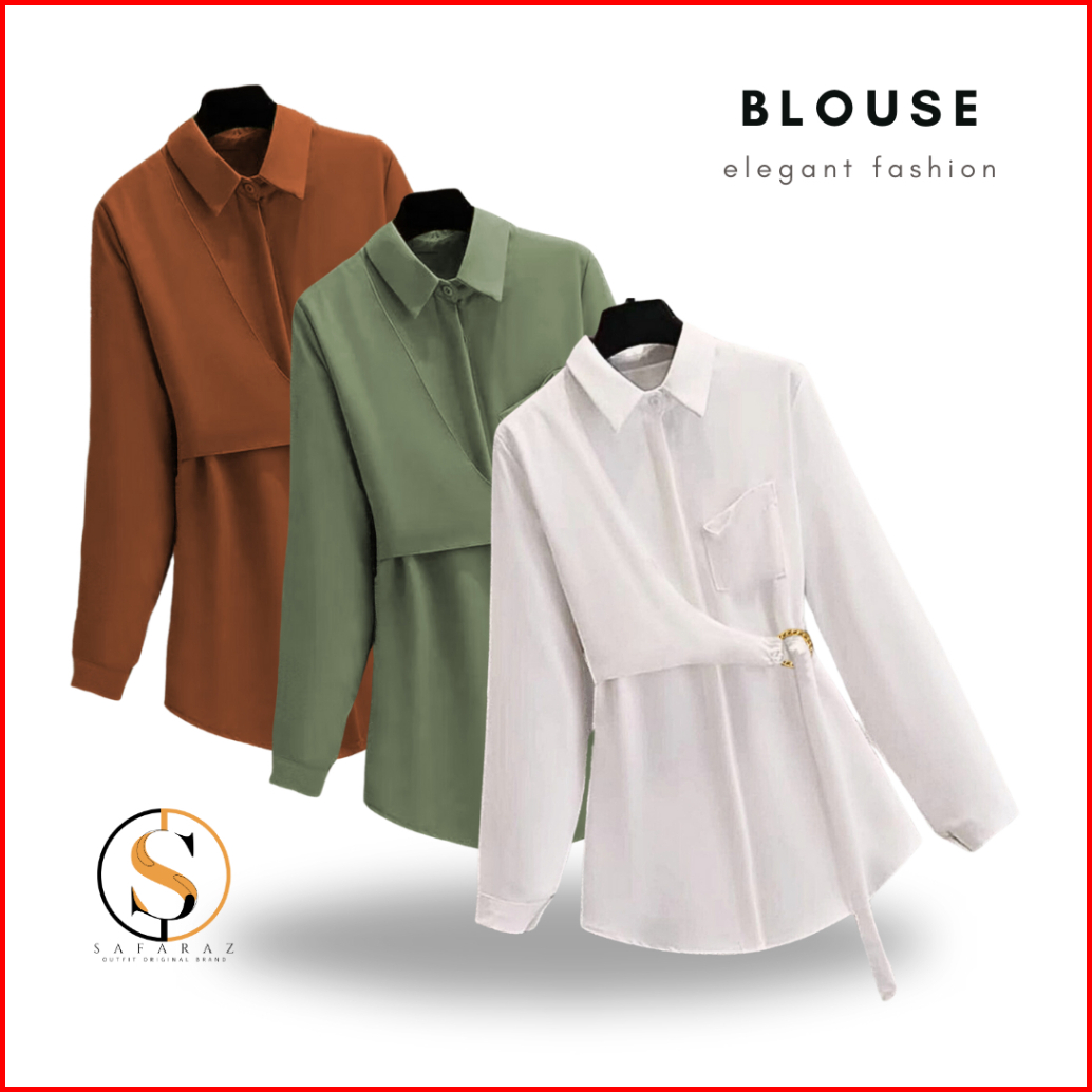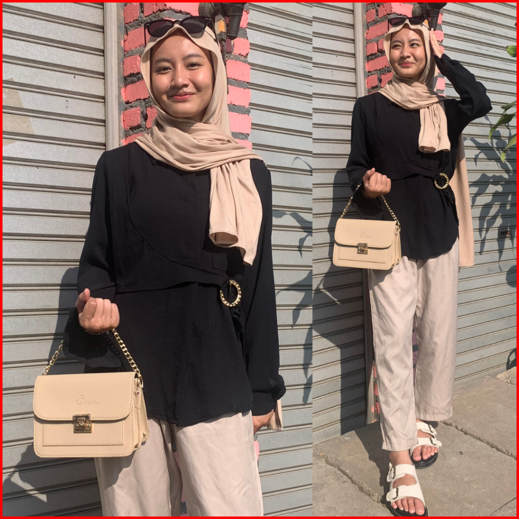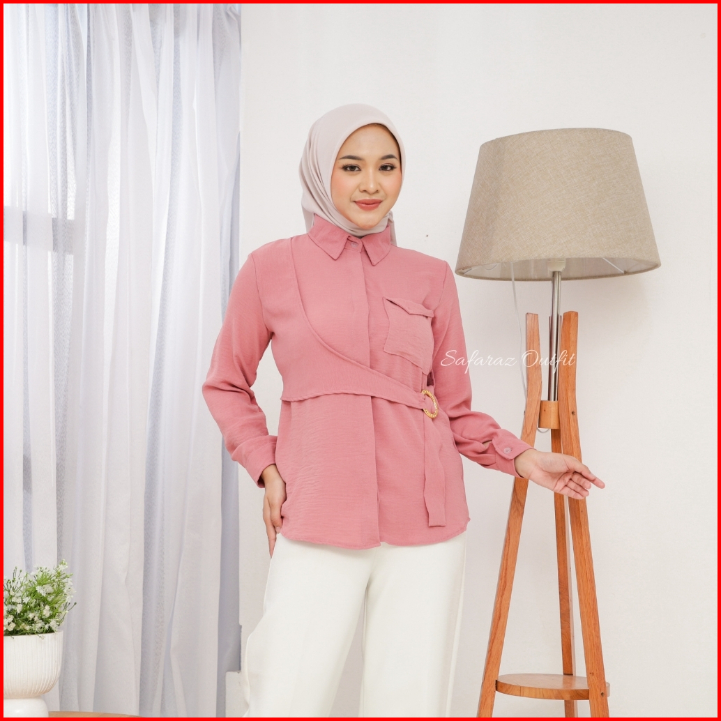 Blouse Atasan Wanita Terbaru Motif Selendang Ring Kancing Aktif Tertutup Cringkel Airflow Hq