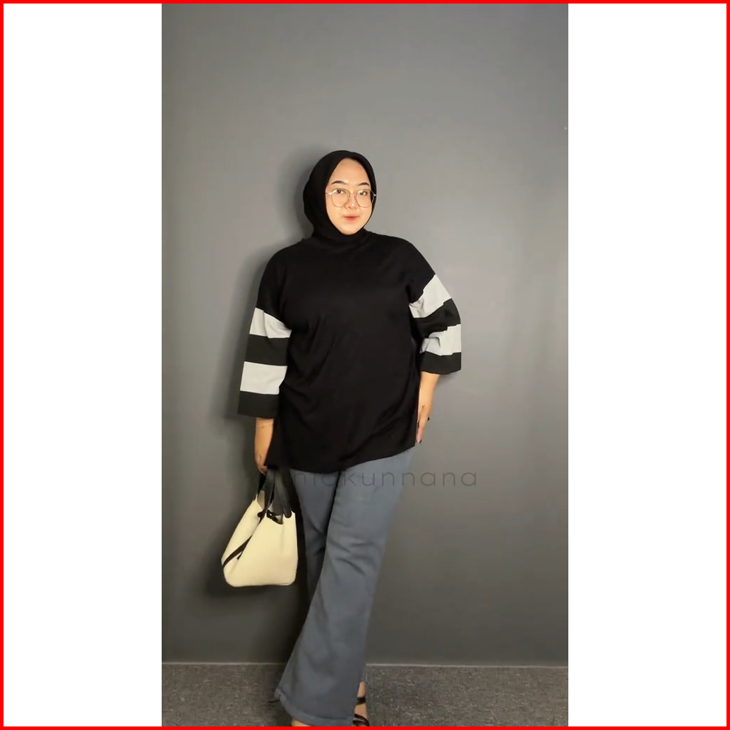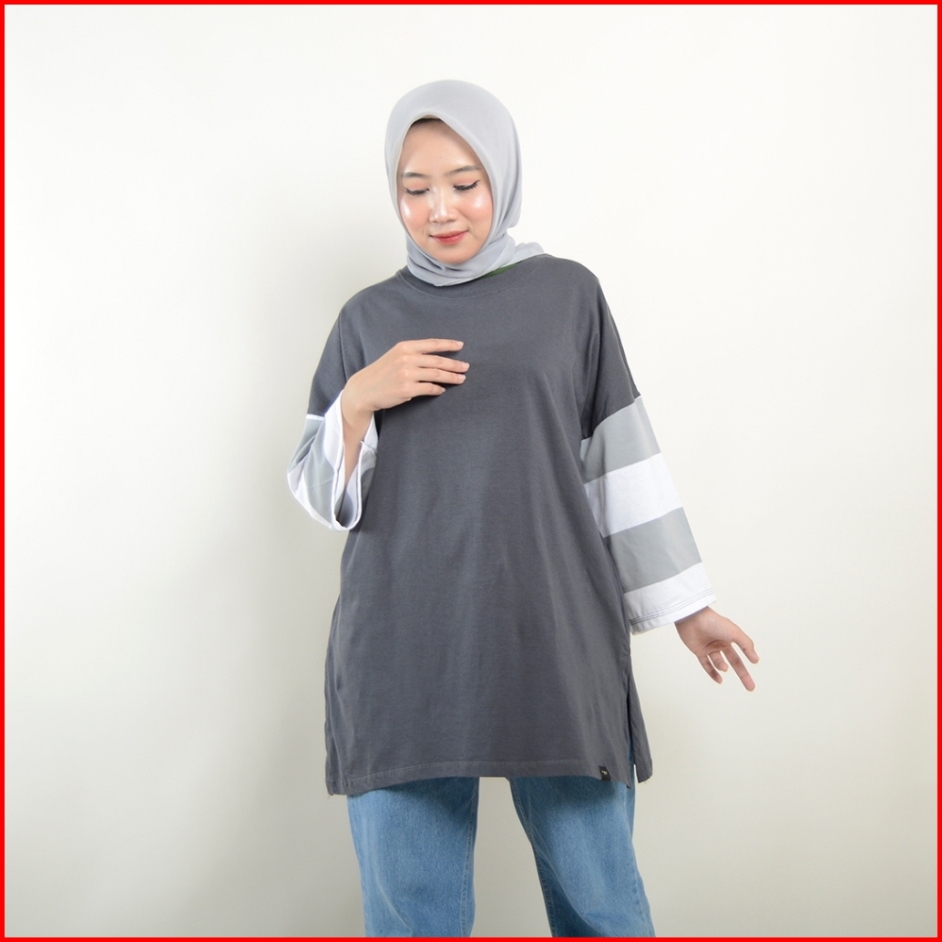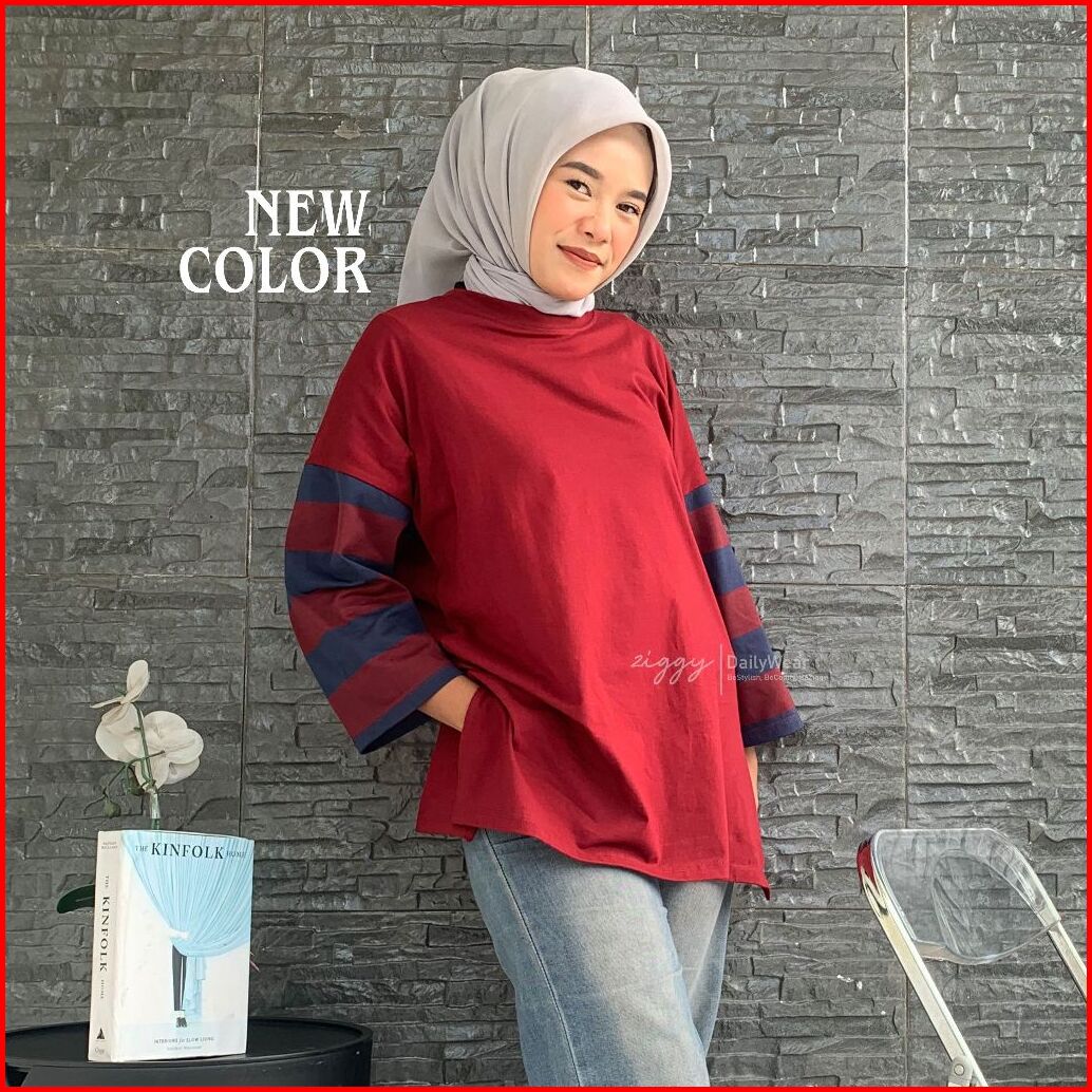 Stella Basic Oversized Kaos Kekinian Lengan Salur Kombinasi Stripe Tshirt Wanita Lengan 7 8 By Ziggy