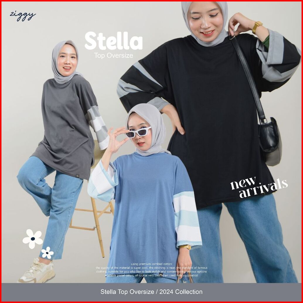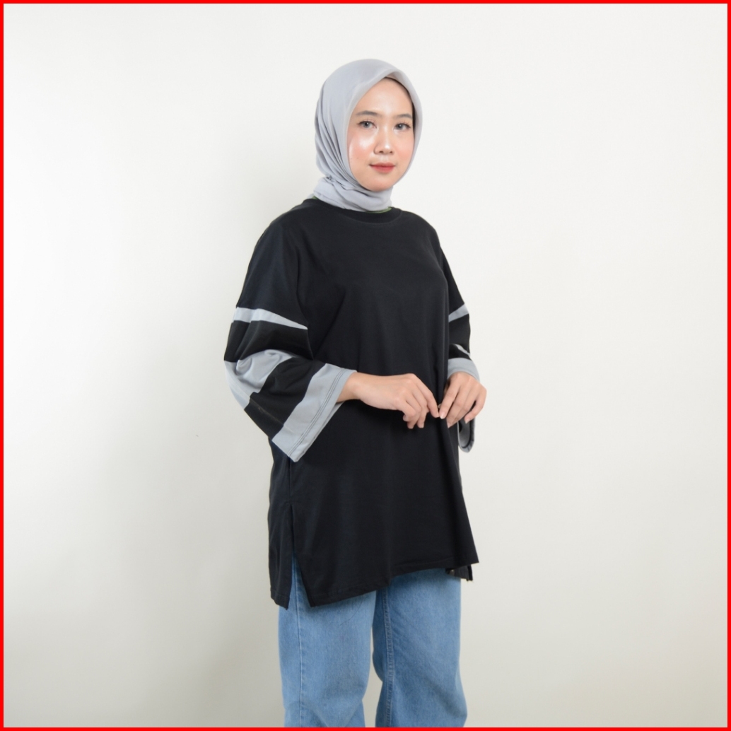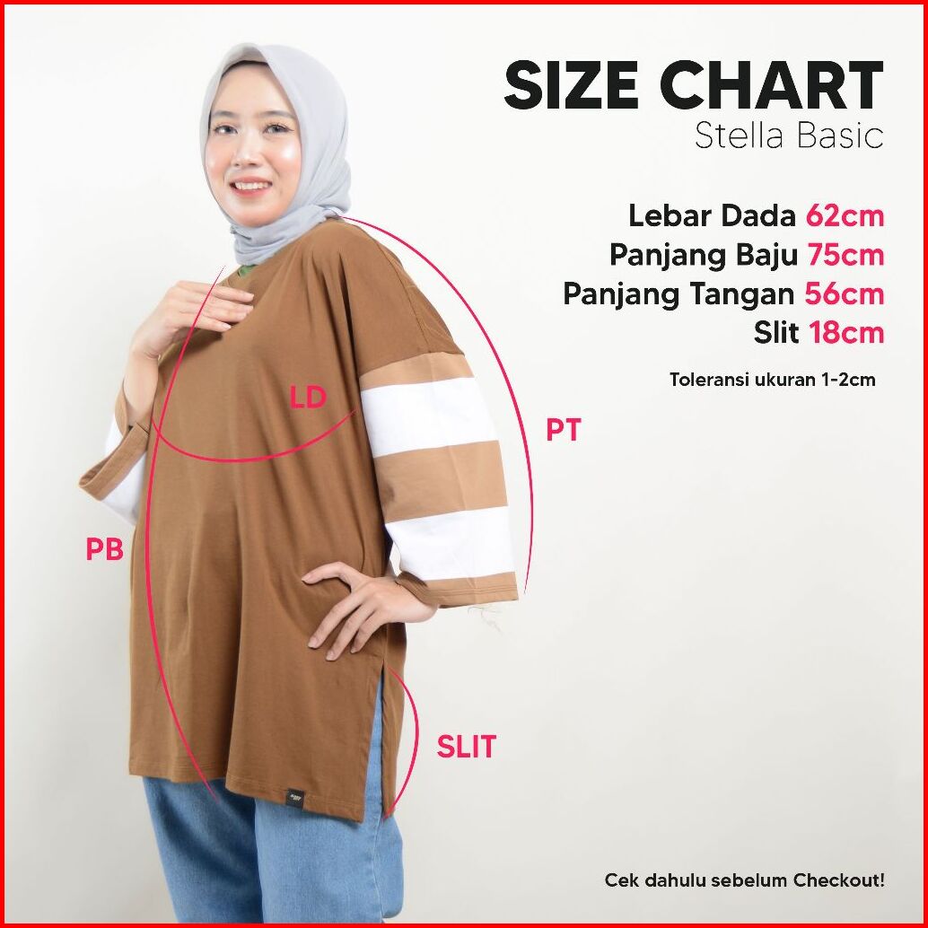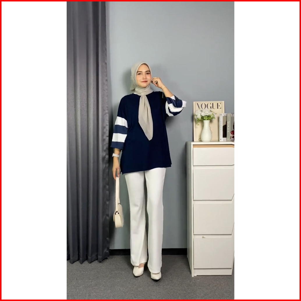 Stella Basic Oversized Kaos Kekinian Lengan Salur Kombinasi Stripe Tshirt Wanita Lengan 7 8 By Ziggy