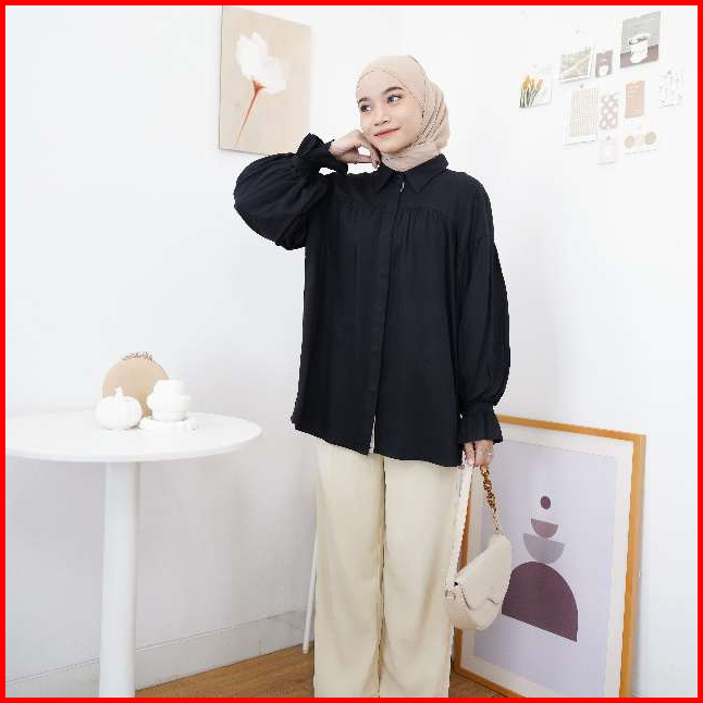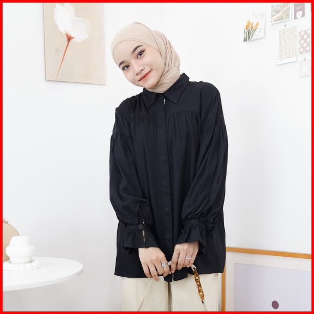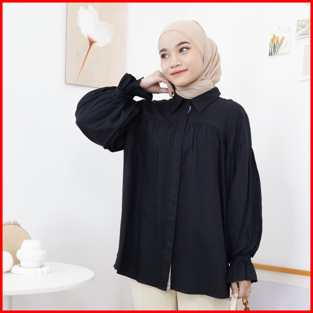 Lopika Blouse Byedek - Blouse Wanita Kekinian - Blouse Wanita - Kemeja Rayon - Blouse Hitam - Kemeja Hitam