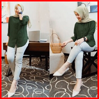 Kemeja Polos Wanita Lengan Panjang Basic Lost Fit Bahan Katun Rayon Twill Premium Adest Id