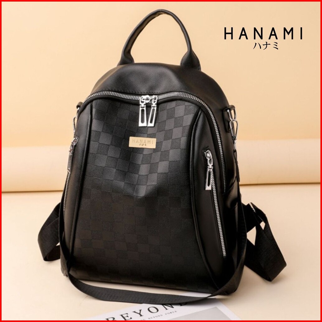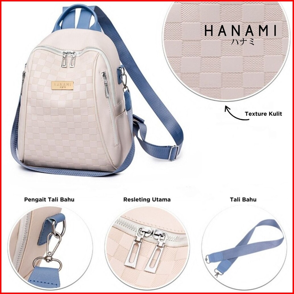 Hanami Tas Ransel Wanita Korea Kulit Putih Cenota Backpack Cewek Sekolah Kuliah Kerja Gendong Punggung Kekinian Branded