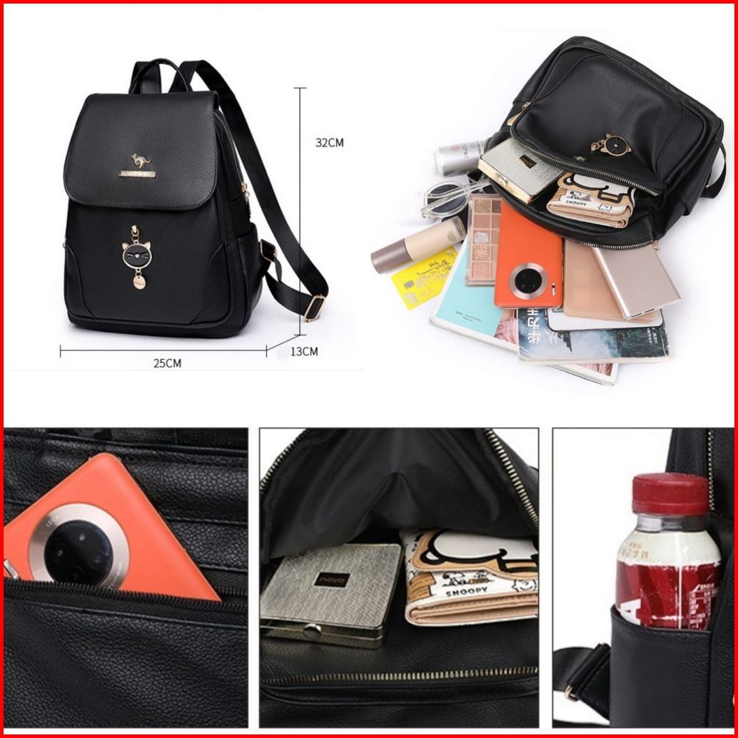 Tas Ransel Wanita Backpack Cewek Gendong Premium Kulit Hitam Minguria Ta764b5 Sekolah Kuliah Kerja Murah Batam Branded P