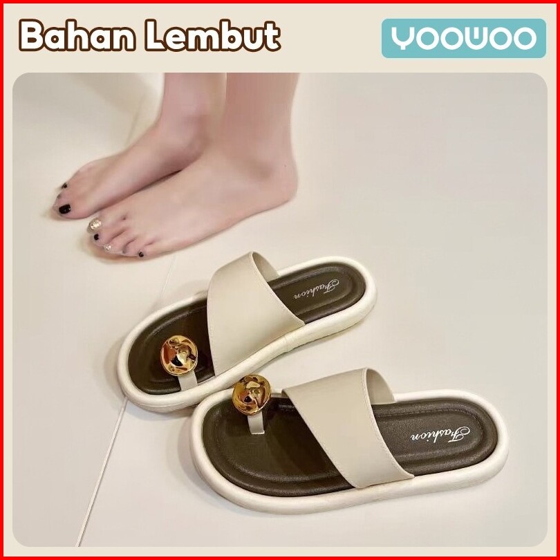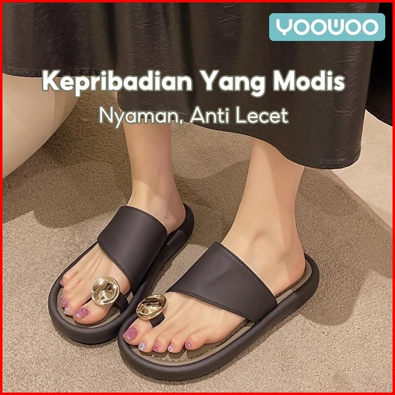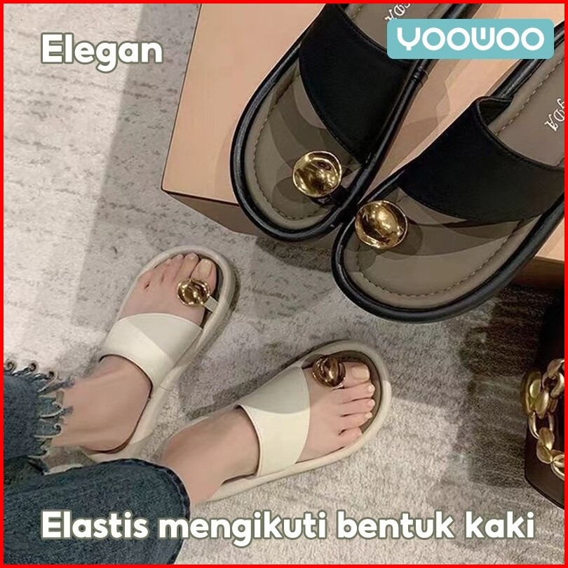 Yoowoo Sandal Untuk Wanita Modis Berlian Imitasi Sandal Pantai Bersol Tebal