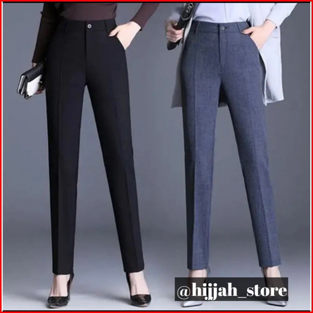 Celana Kerja Wanita Kantor Bahan Formal Pinggang Resleting Dan Karet Cutting Slimfit Panjang Nyaman Dipakai