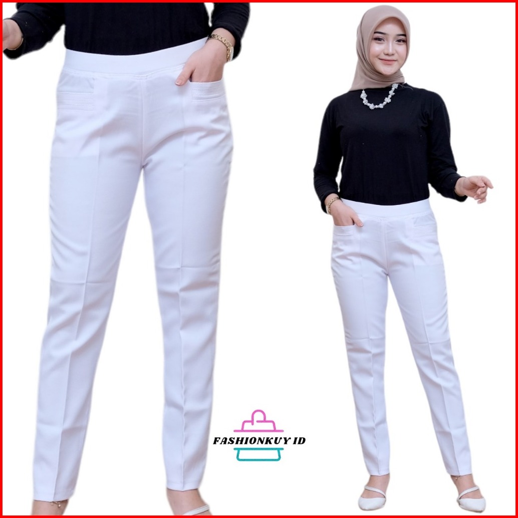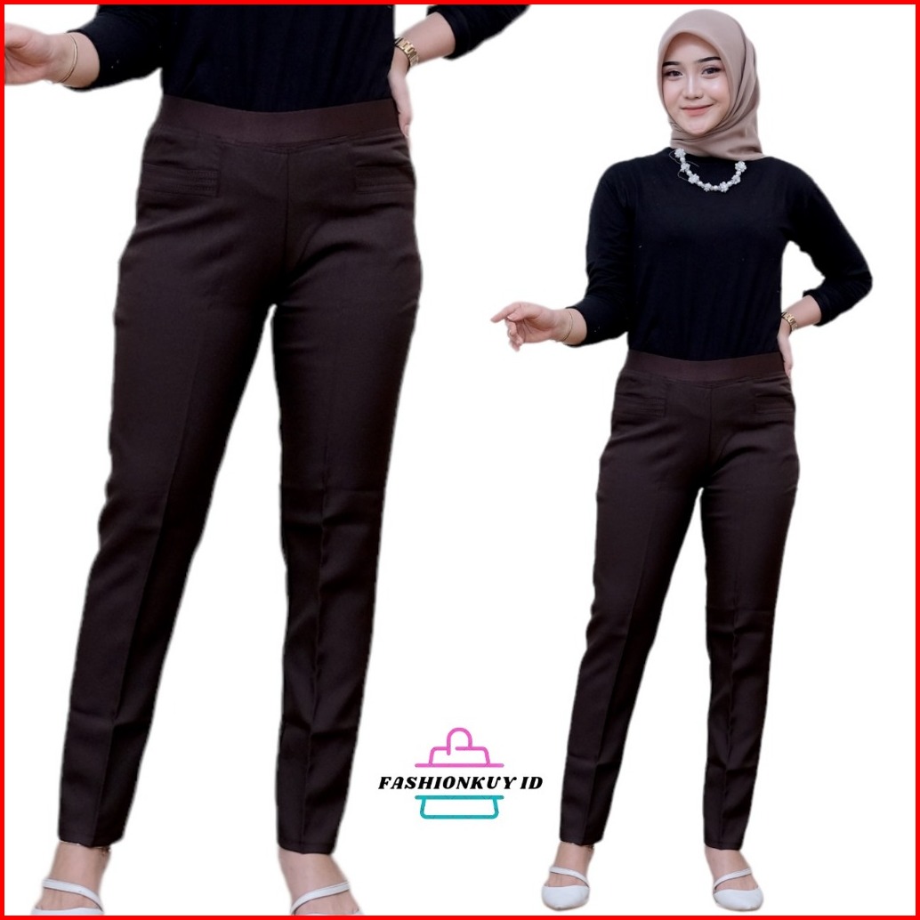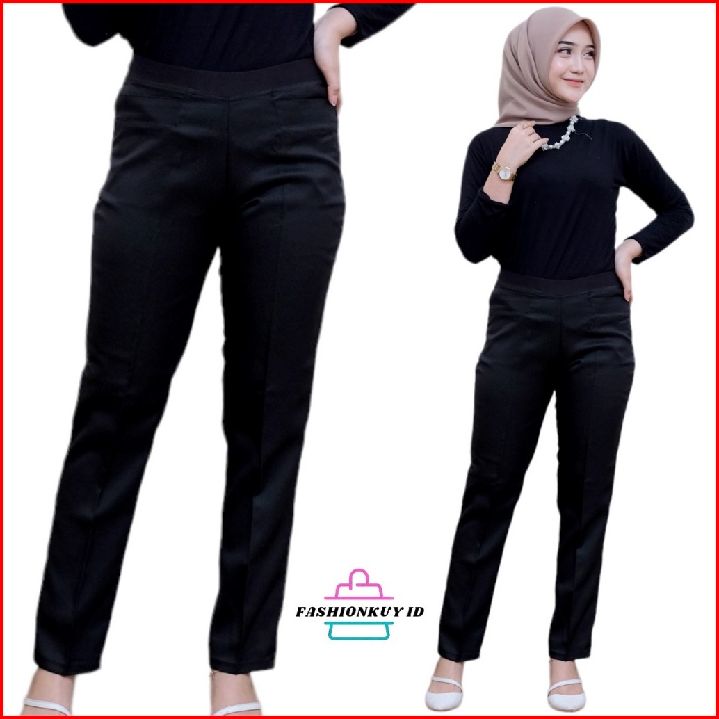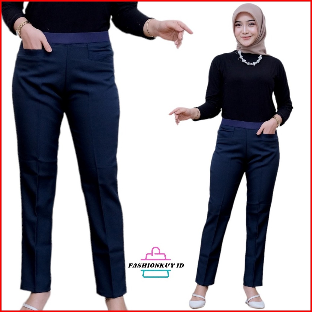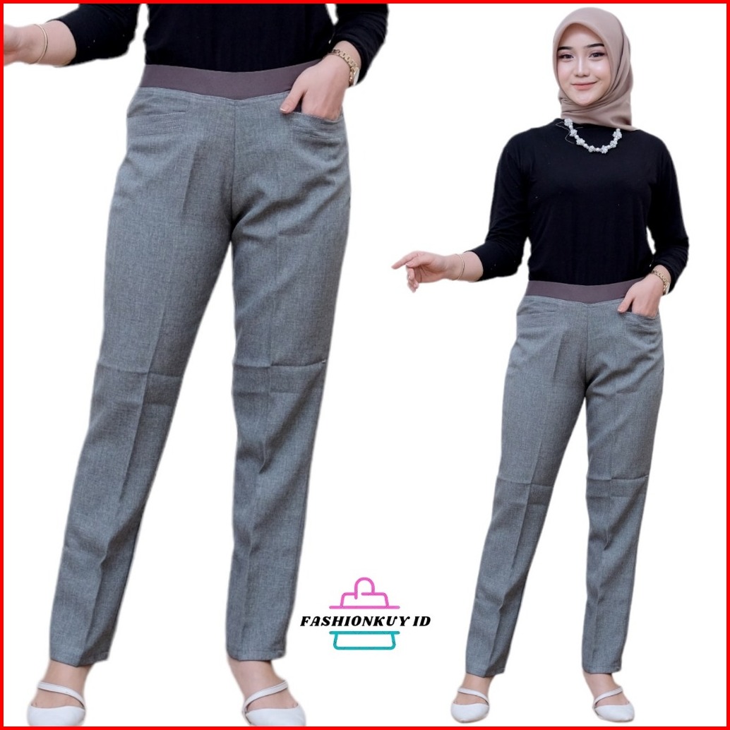 Celana Kerja Kantor Wanita Pinggang Karet Standar Dan Jumbo