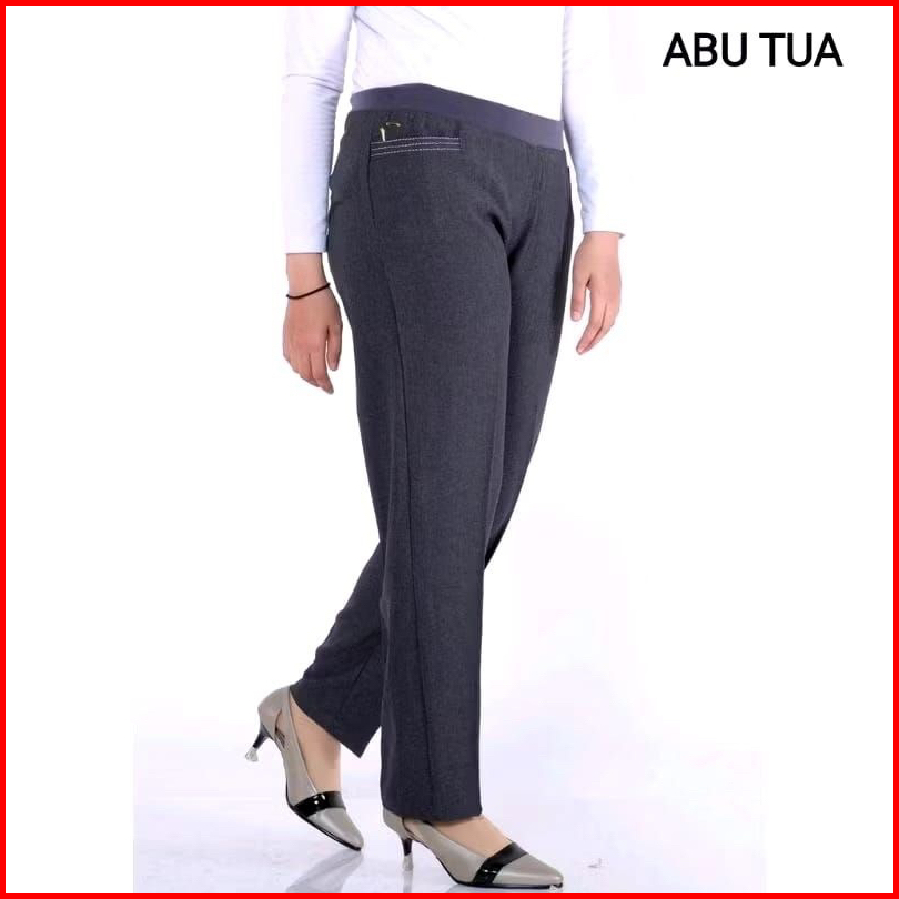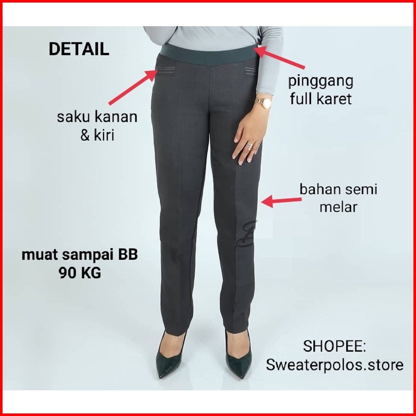 Celana Kerja Kantor Highwaist Wanita Jumbo Premium Pinggang Karet Muat Sampai Bb 90kg
