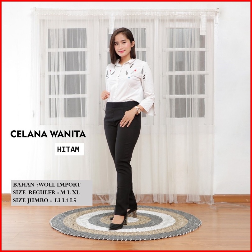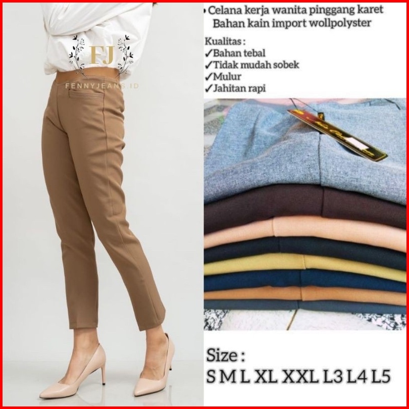 Celana Kerja Wanita Pinggang Karet Bahan Wol Impor Termurah