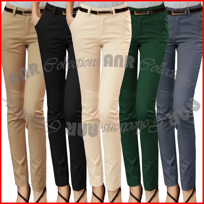 Celana Panjang Standard Reguler Chino Cino Chinos Wanita Cewek Murah Berkualitas - Krem Abu Hitam