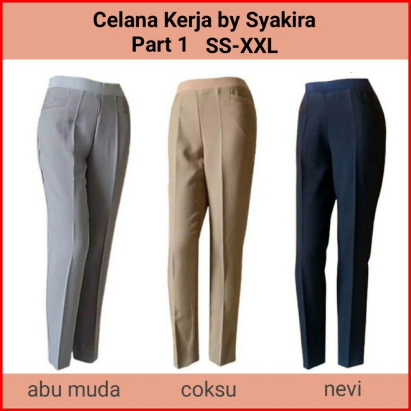 Celana Kerja Kantor Wanita Pinggang Karet Syakira By Azkia