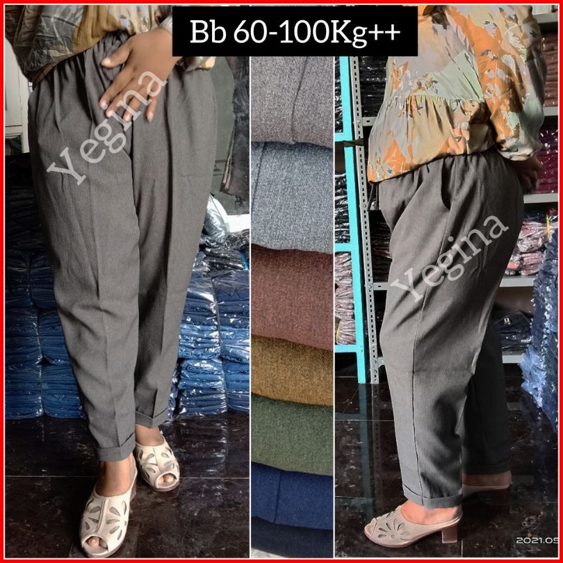 Celana Kerja Wanita Bahan Drill Premium Jumbo Superjumbo Putih Banyak Warna Polos Baggy Pants Panjang Kekinian Terlaris