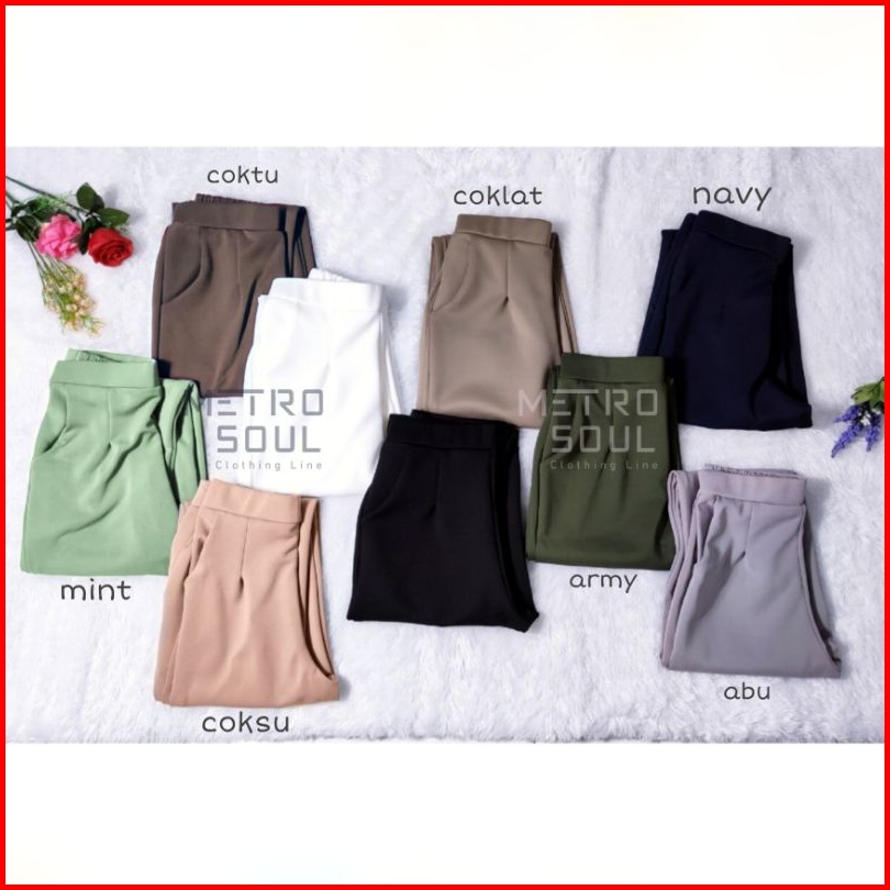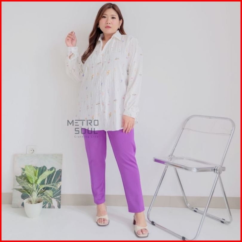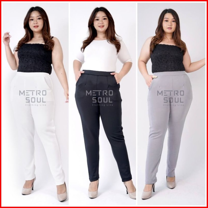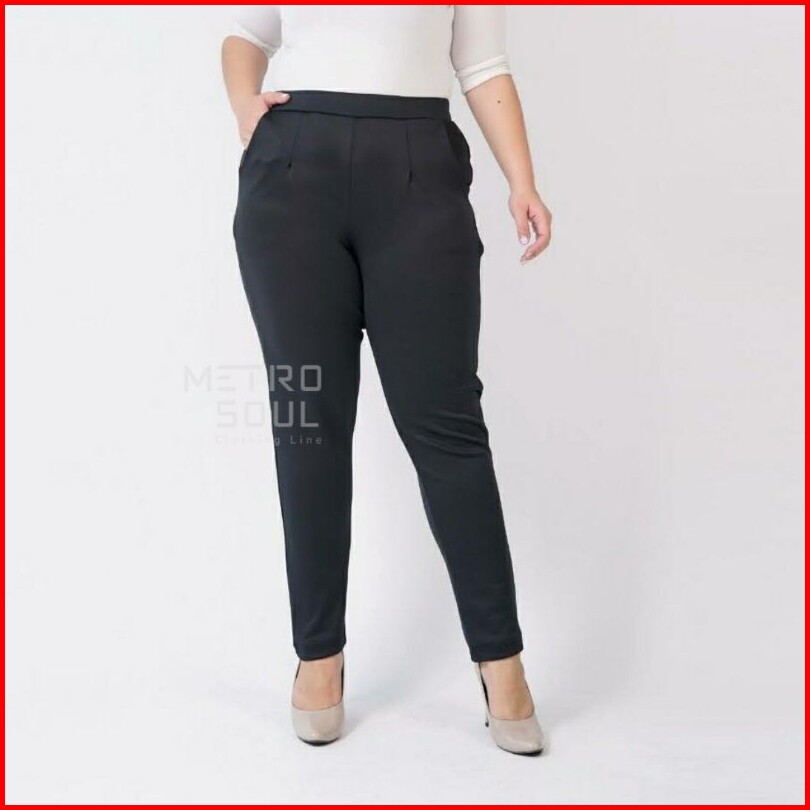 Celana Pensil Super Jumbo 3l-4l Basic Scuba Pants Premium Melar Stretch Celana Kerja - Putih Hitam