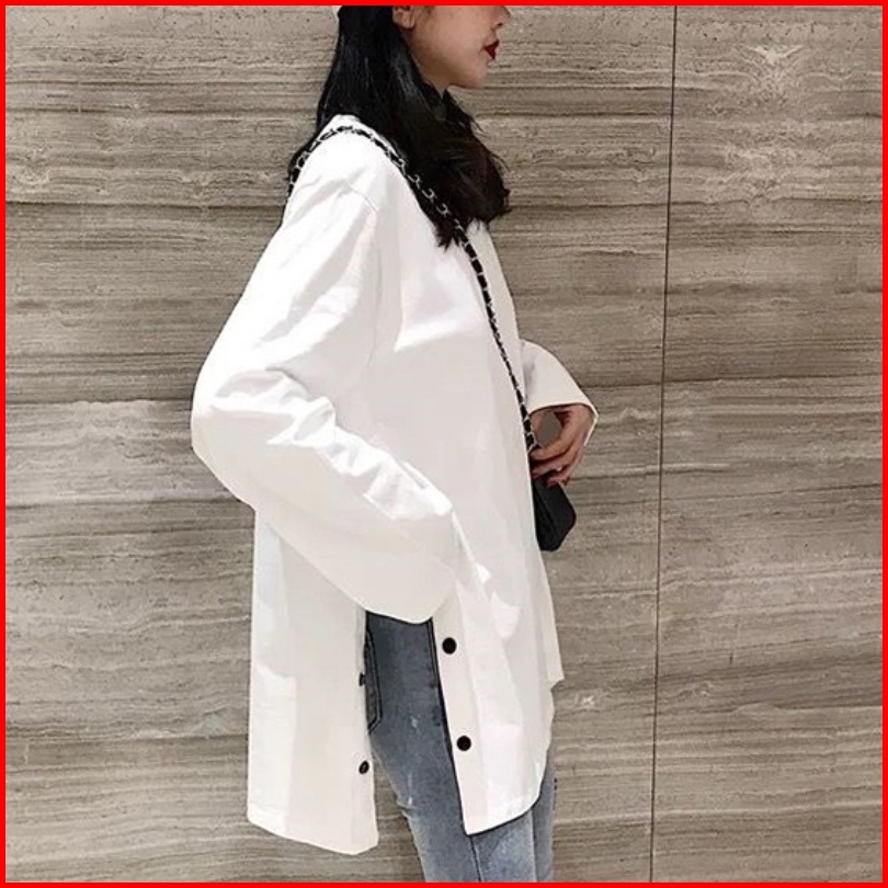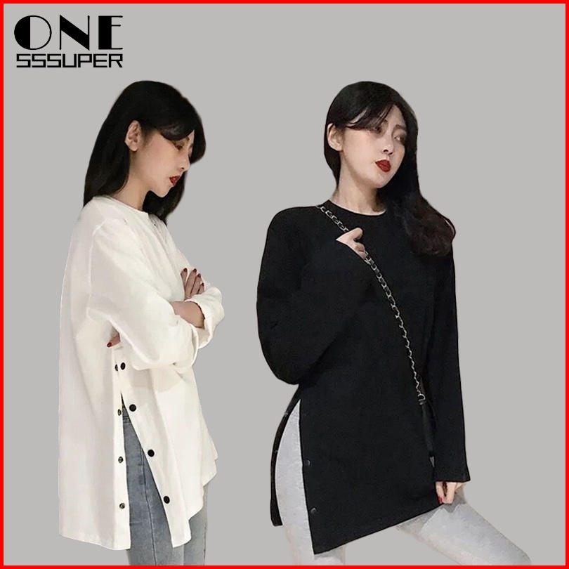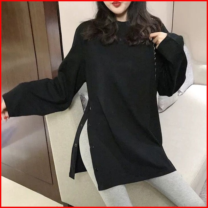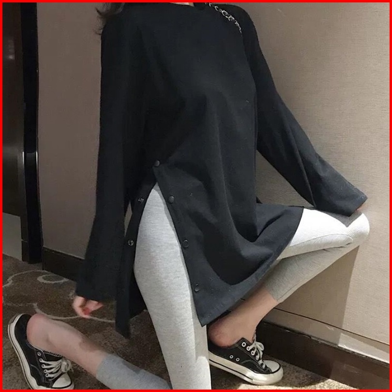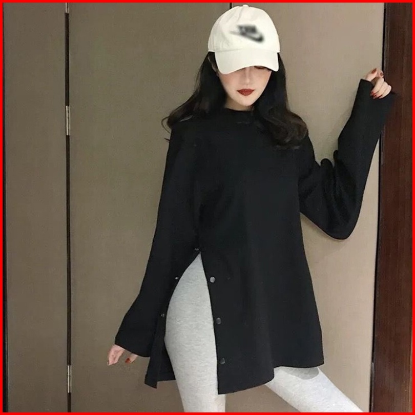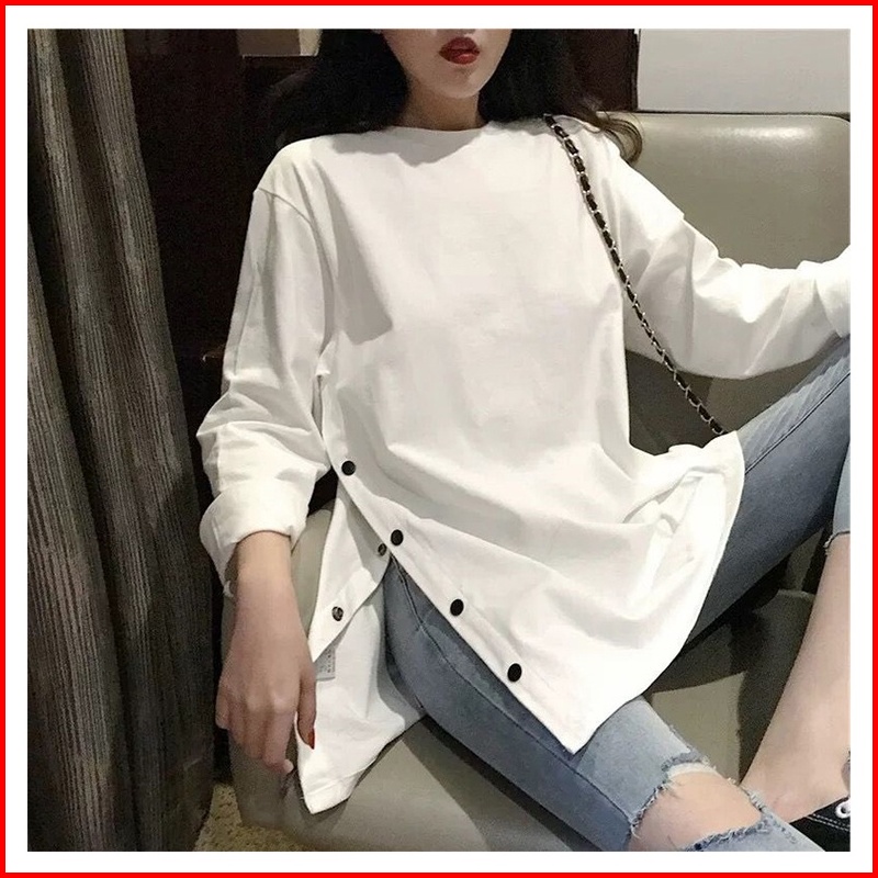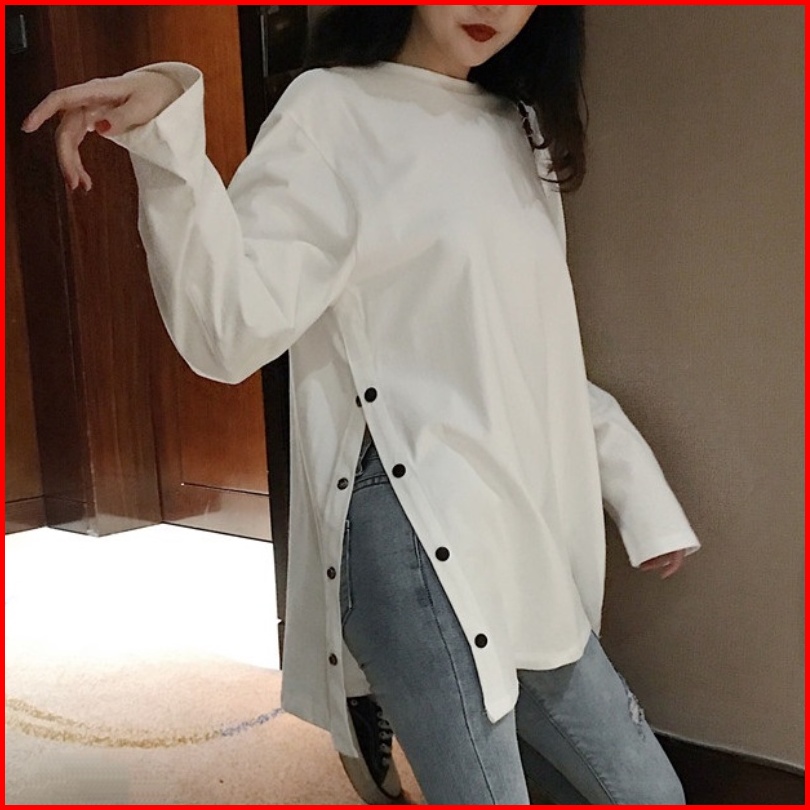 S-2xl T-shirt Wanita Lengan Panjang Bottoming Shirt All-match Top Slit Pakaian Atasan Korea Murah