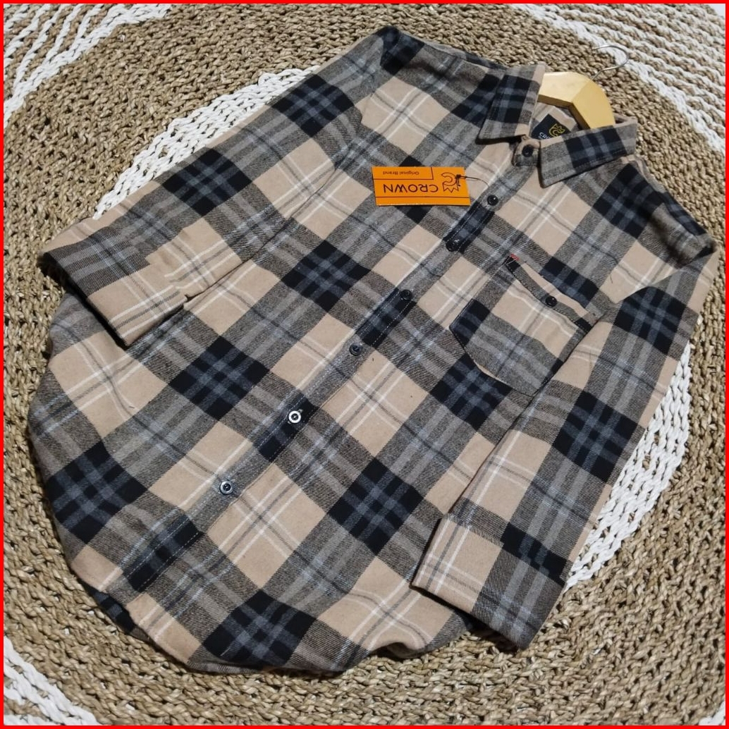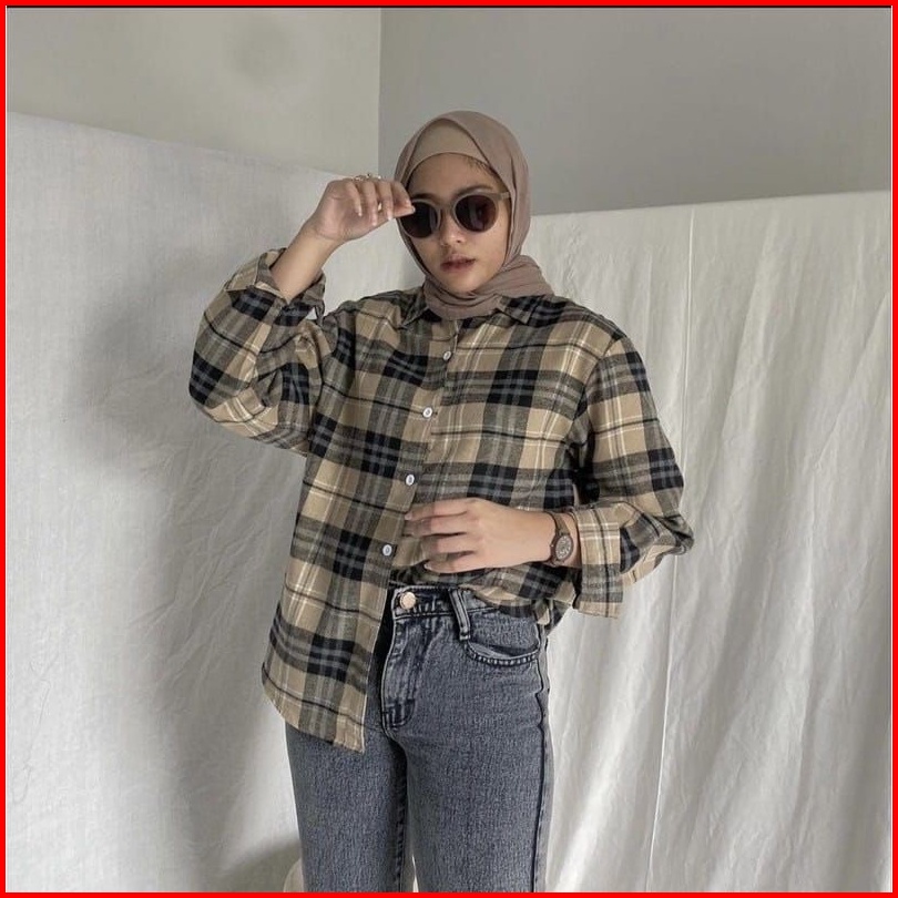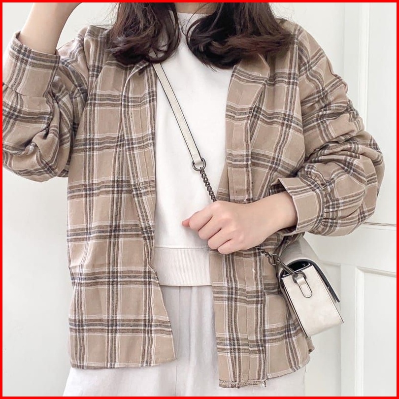 Kemeja Flanel Wanita Lengan Panjang Kotak Kain Tebal Halus