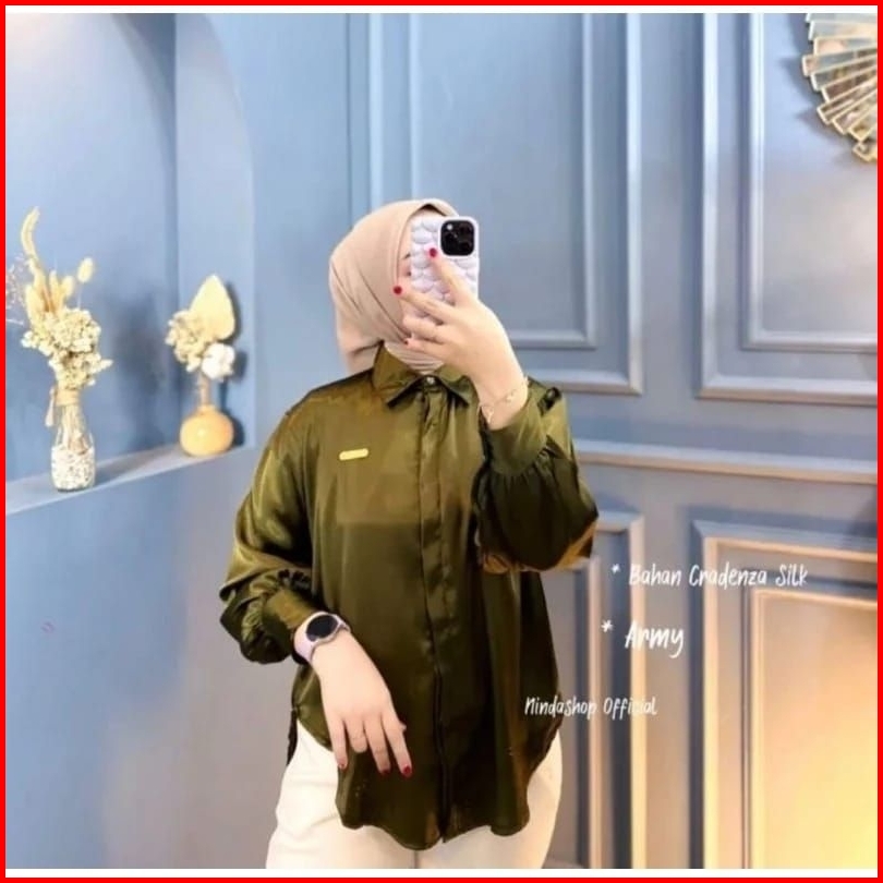 Atasan Blouse Kemeja Wanita Satin Ld 115cm Kemeja Wanita Mengkilat Elegan