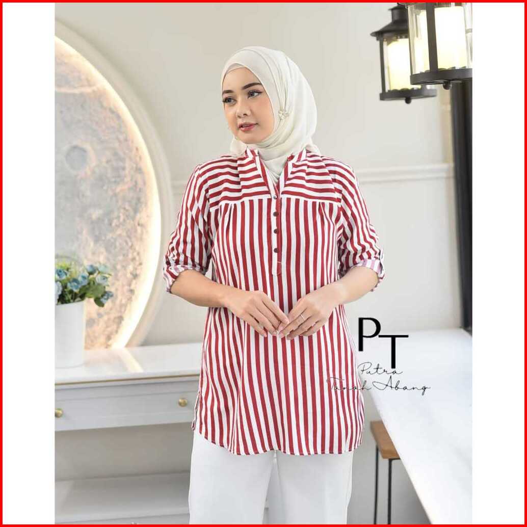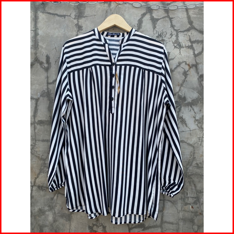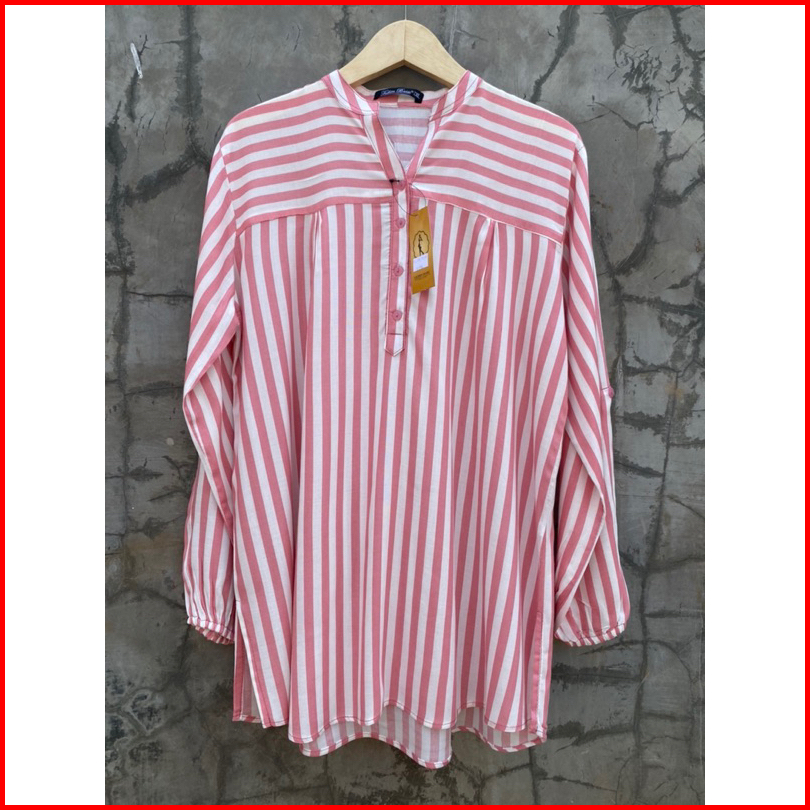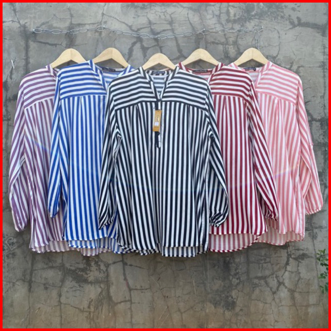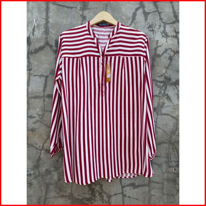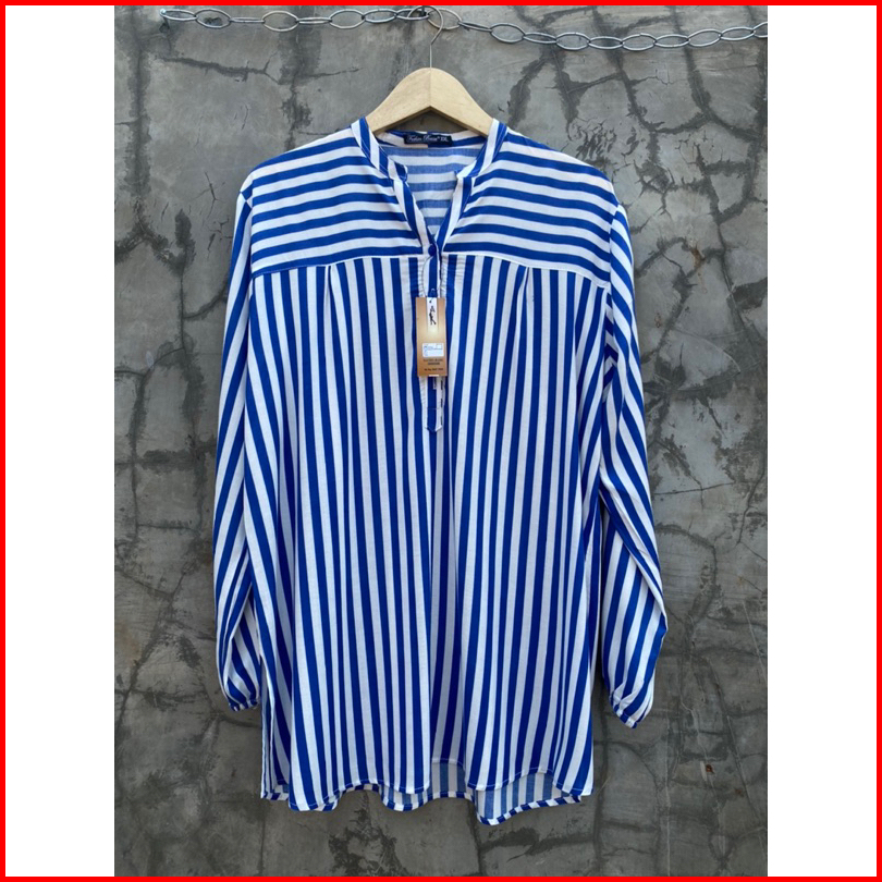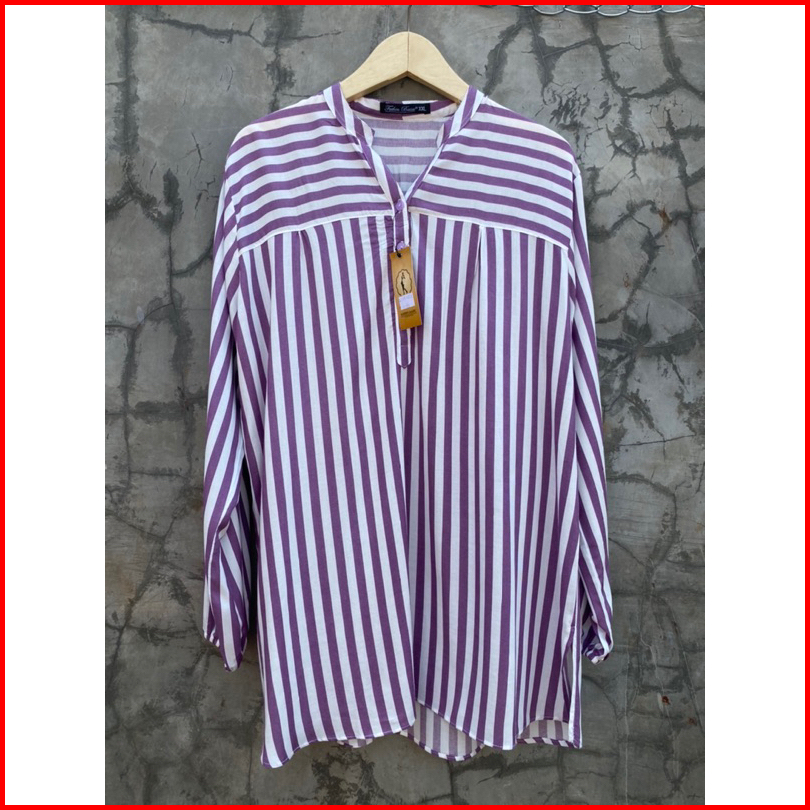 Blouse Atasan Pakaian Kemeja Motif Salur Garis-garis-garis Baju Wanita Cewek Perempuan Muslim Rayon
