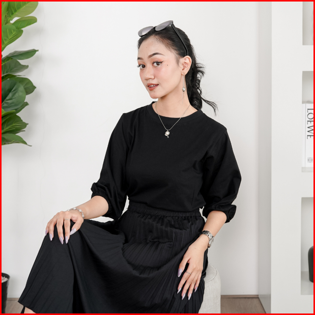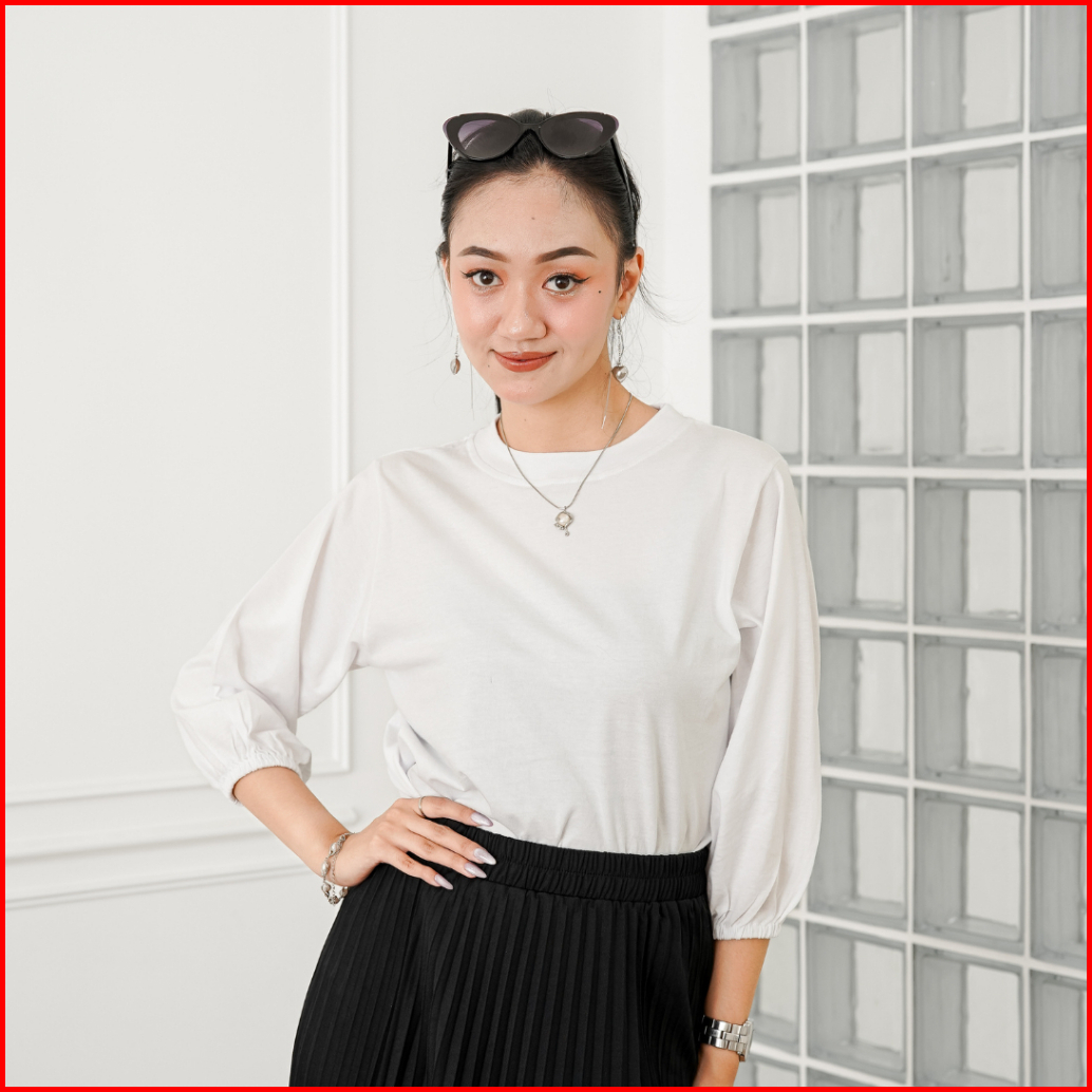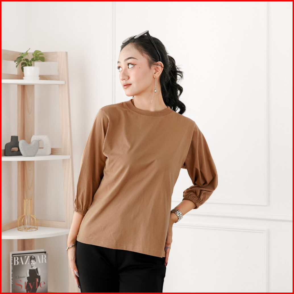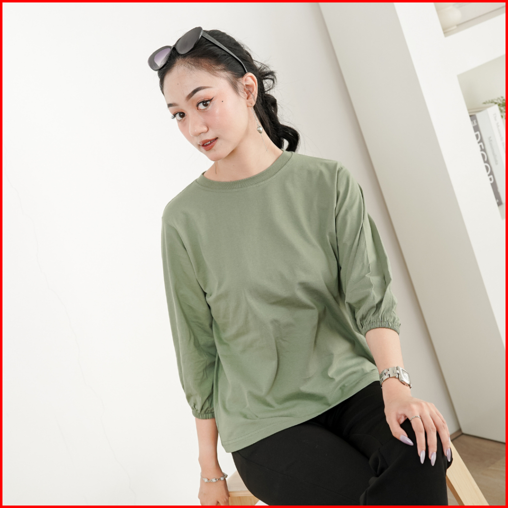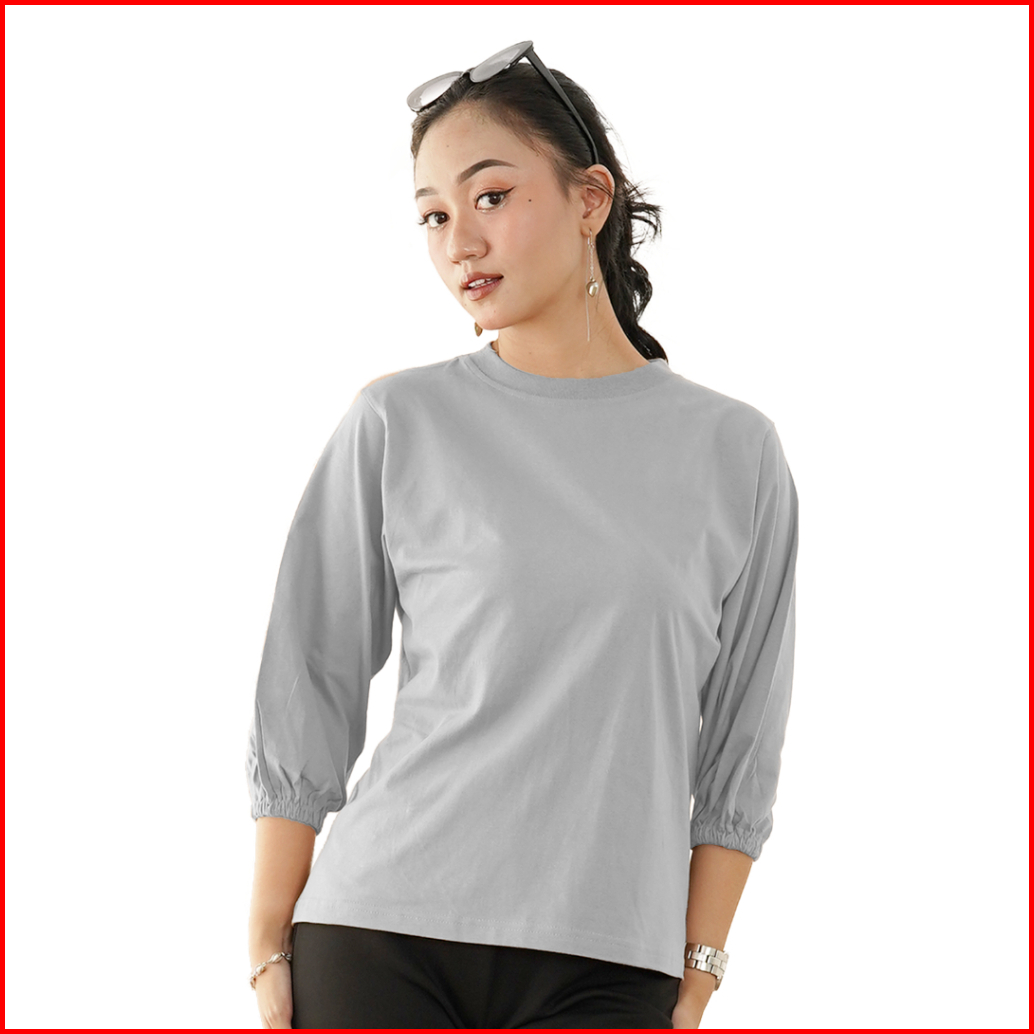 Lookit - Blouse Atasan Kaos Wanita Tangan Balon Polos Cotton Combed 24s Santai