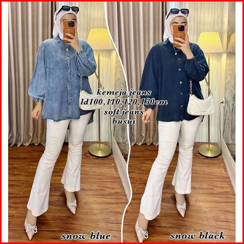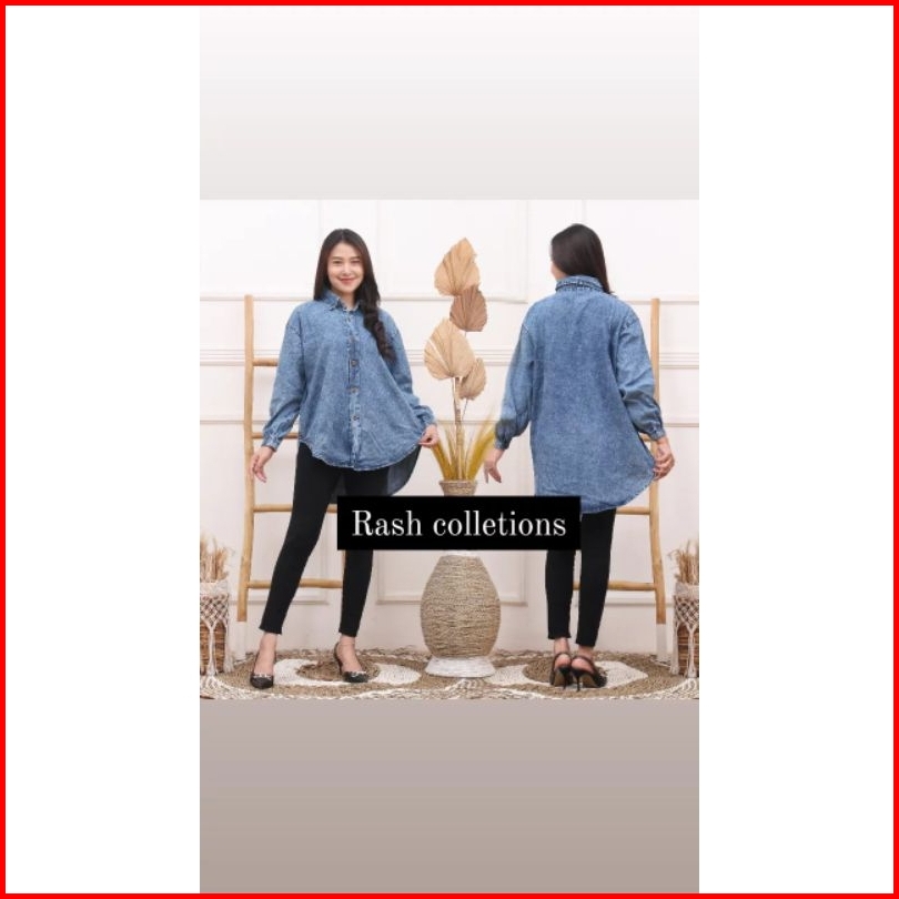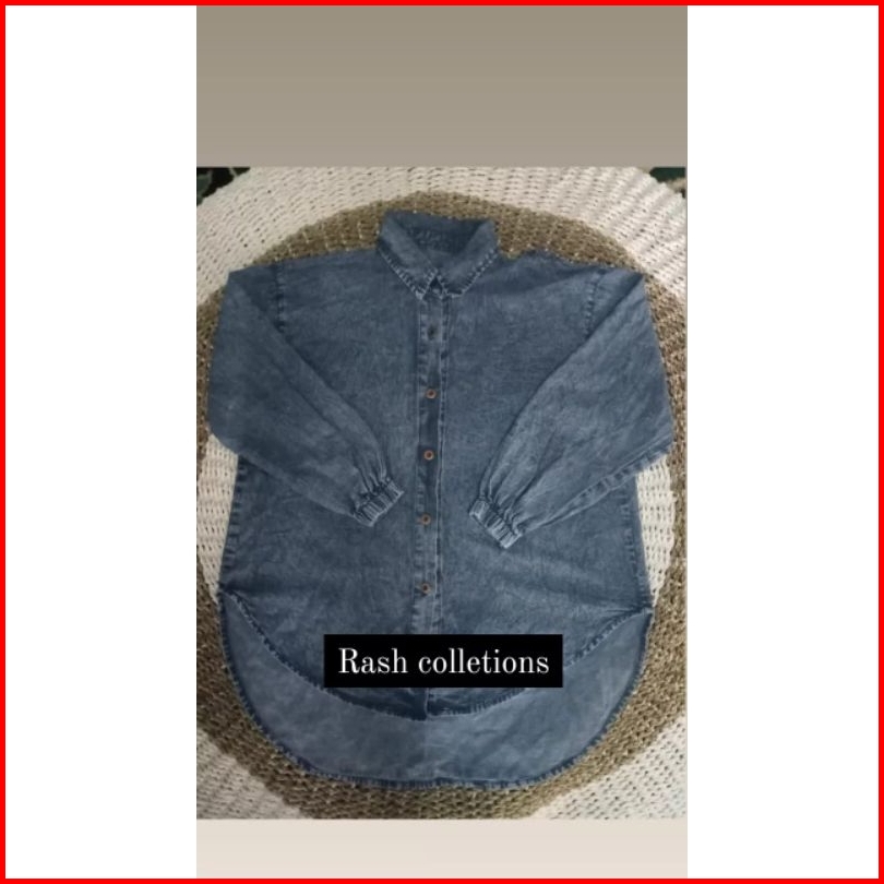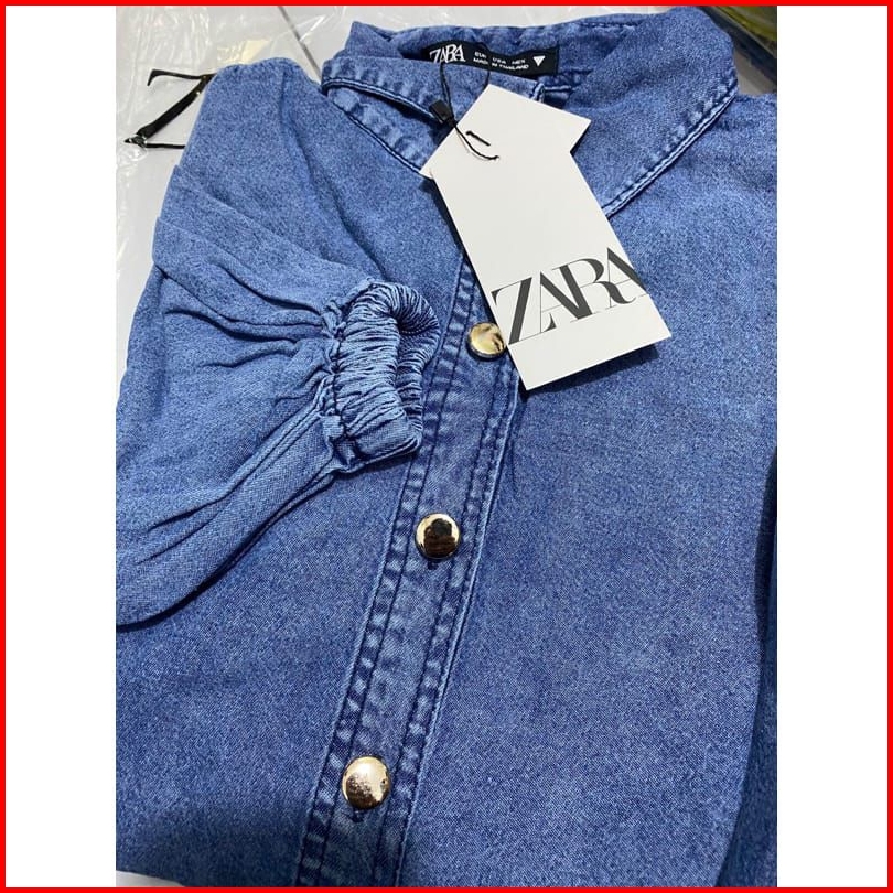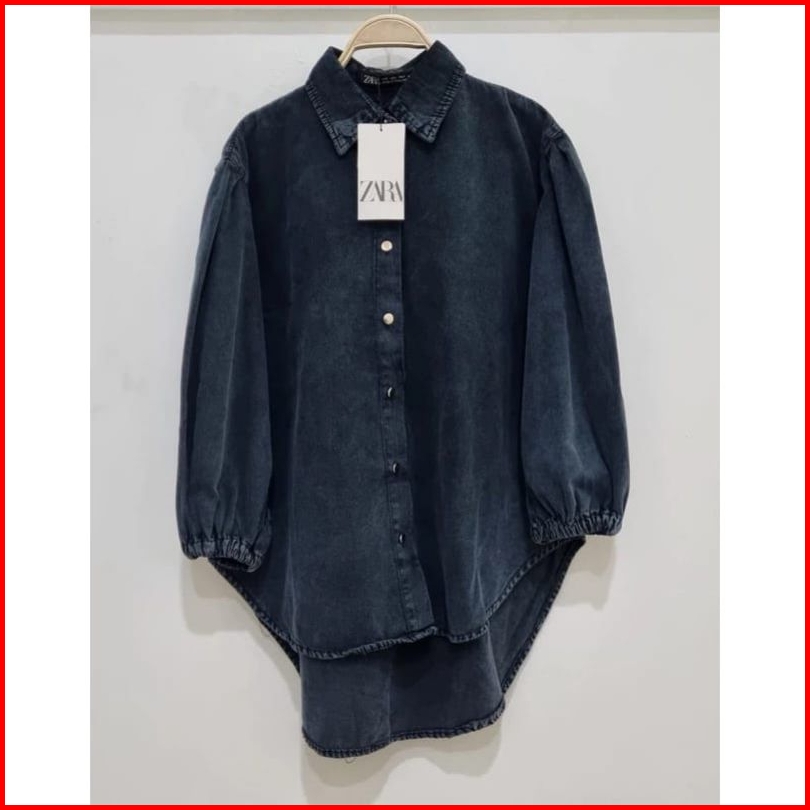 Atasan Zara Wanita Jeans Oversize Lingkar Dada 120cm Lengan Karet Kemeja Fashin Cwe