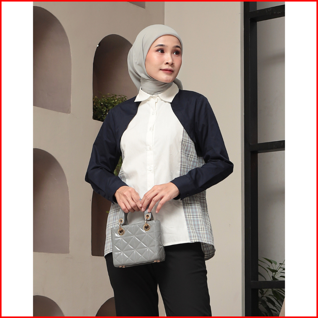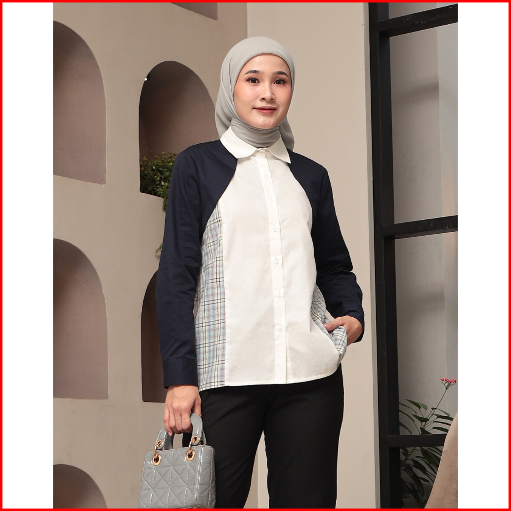 Omara Felita Fabric Combination Shirt Kemeja Wanita - Brighter Days