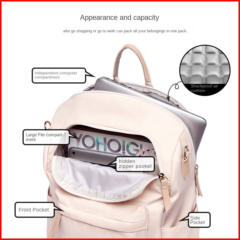 Smalllee Pelajar Kain Oxford Tahan Air Anti Pencurian Tas Ransel Tahan Guncangan 14 15.6