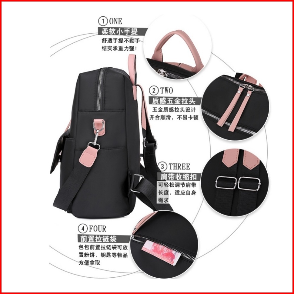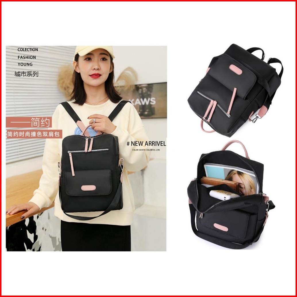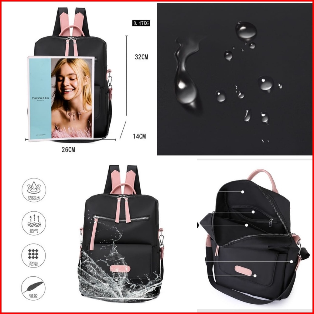 Tas Ransel Wanita Anti Air Backpack Hitam Premium Sasay Gendong Ta466b5 Punggung Sekolah Kerja Besar Kuliah Batam Cewek