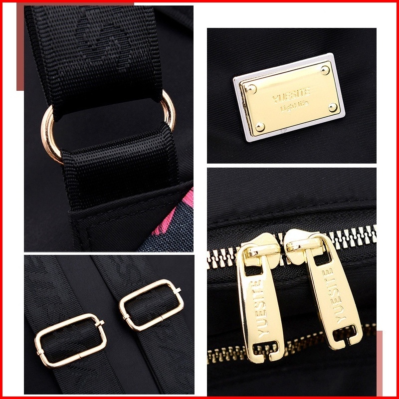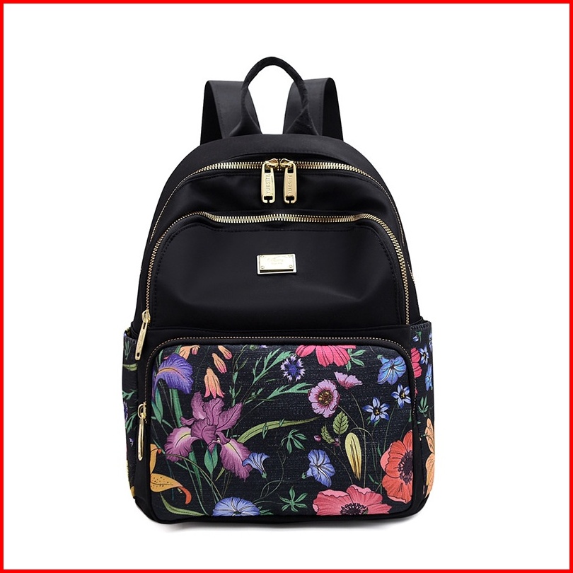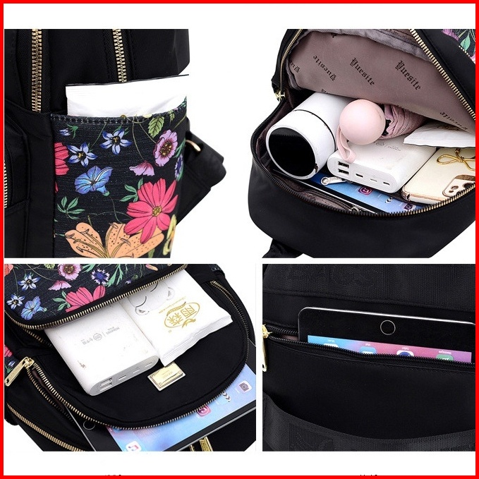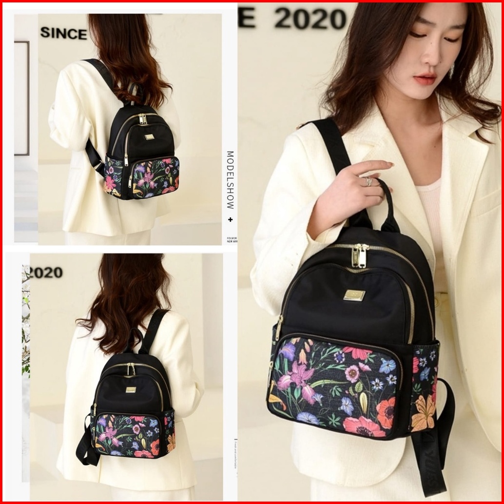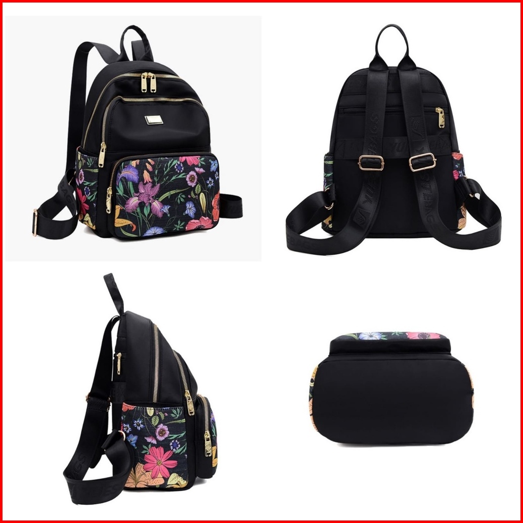 Tas Ransel Wanita 3 Resleting Anti Air Motif Bunga Hitam Backpack Lumbia Ta573b5 Cewek Korea Gendong Punggung Sekolah Ku
