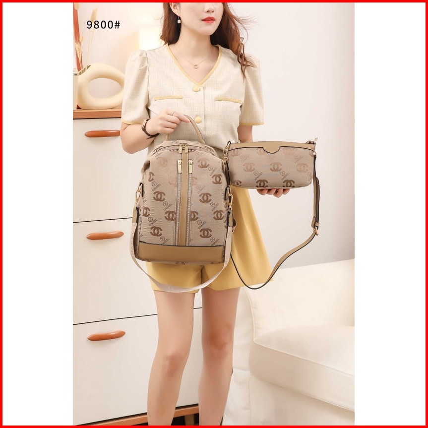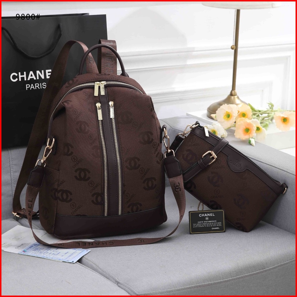 Ch Canvas Leather Logo Cc Backpack Shoulder Bag 9800