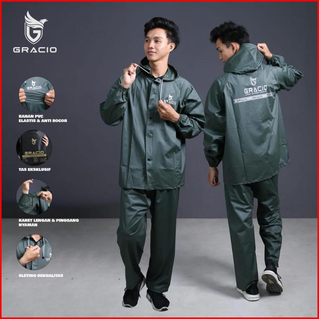 Raincoat Jas Hujan Dewasa Terbaik Pria Wanita By Gracio Mantel Hijau Army