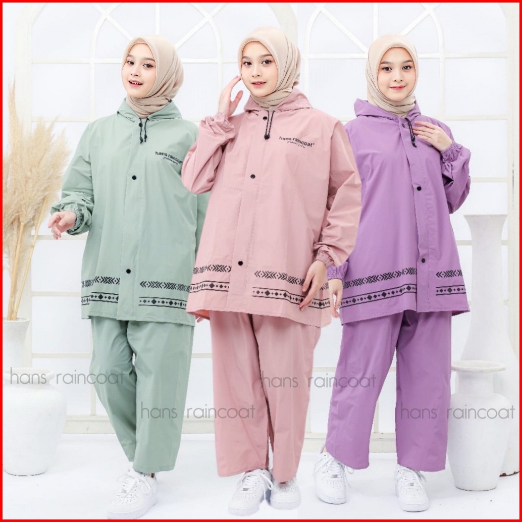 Hans Jas Hujan Pria Wanita Tebal Warna Pastel Setelan Jaket Dan Celana