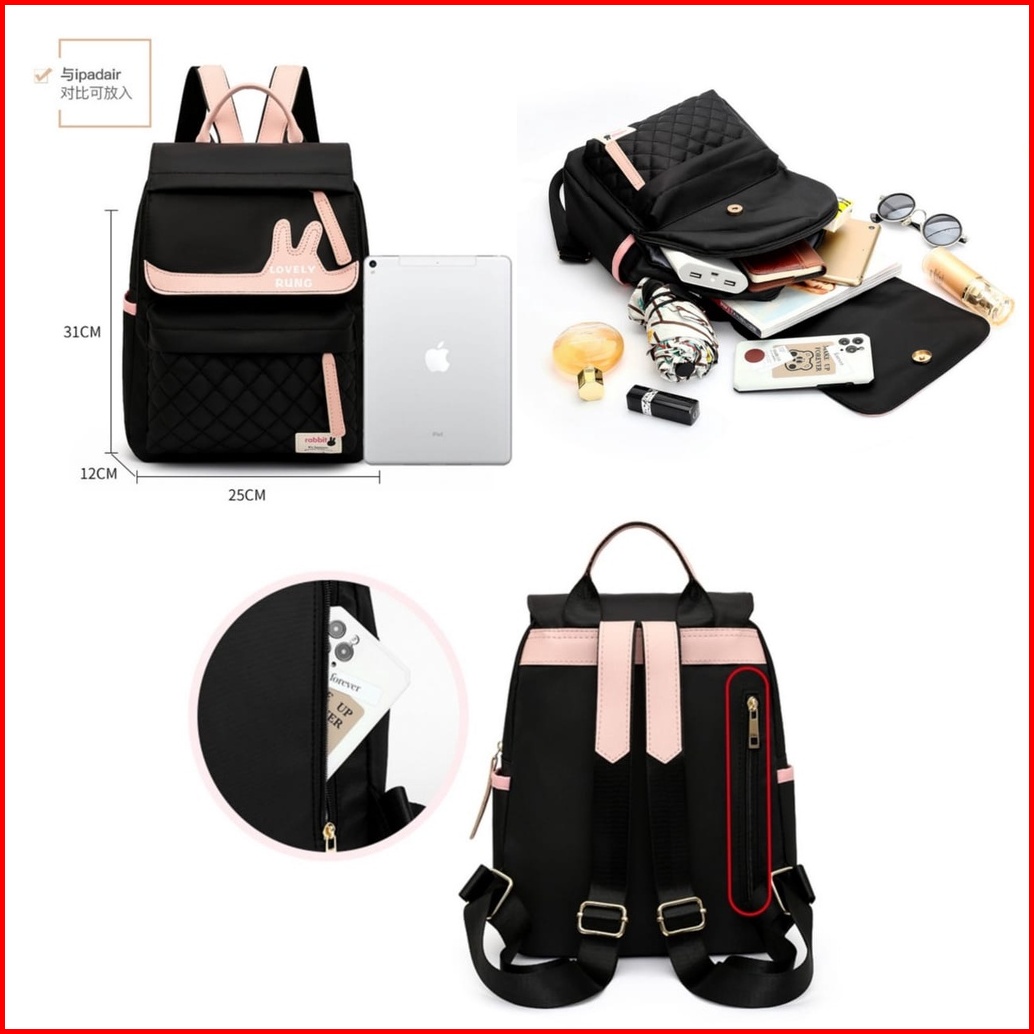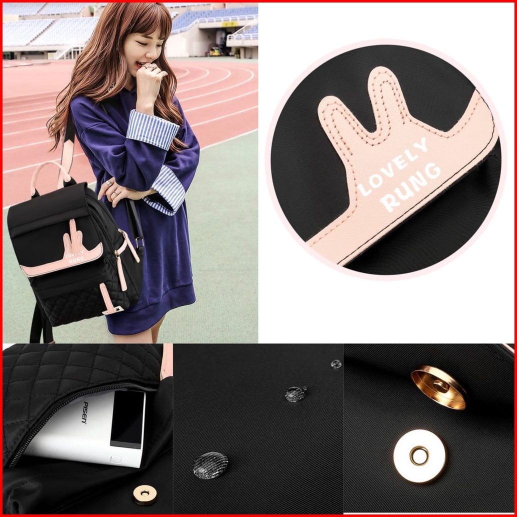 Tas Ransel Wanita Backpack Anti Air Cewek Korea Hitam Heimans Ta470b5 Gendong Punggung Sekolah Kuliah Kerja Remaja Premi