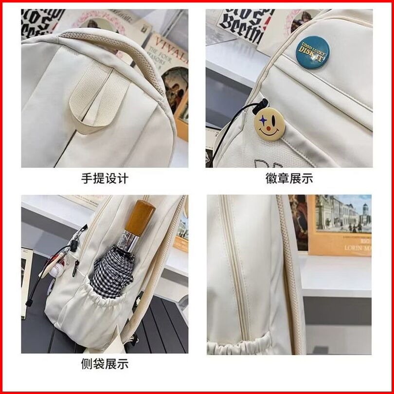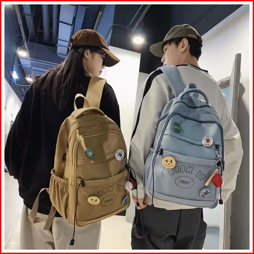 Tas Ransel Sekolah Wanita Warna Solid Tas Bahu Kanvas Fashion Korean Style Schoolbag Laptop Bag