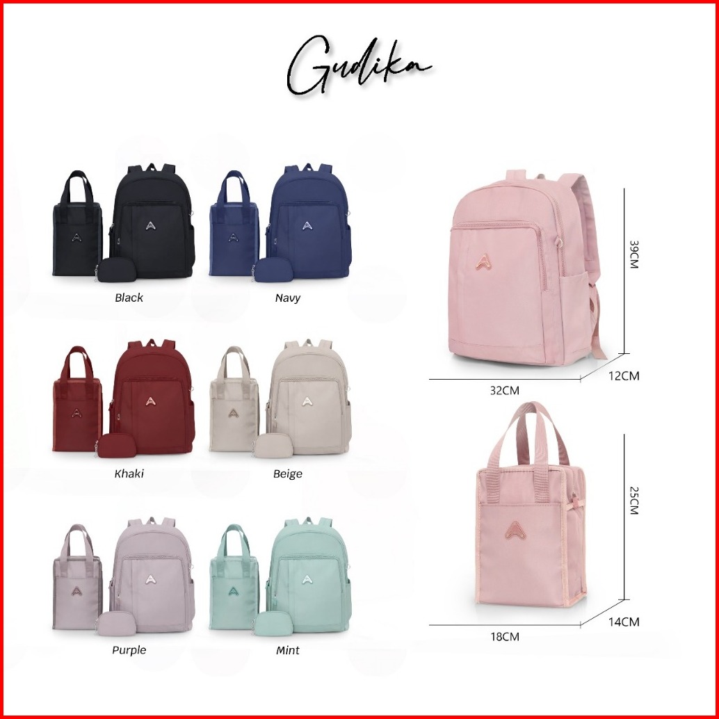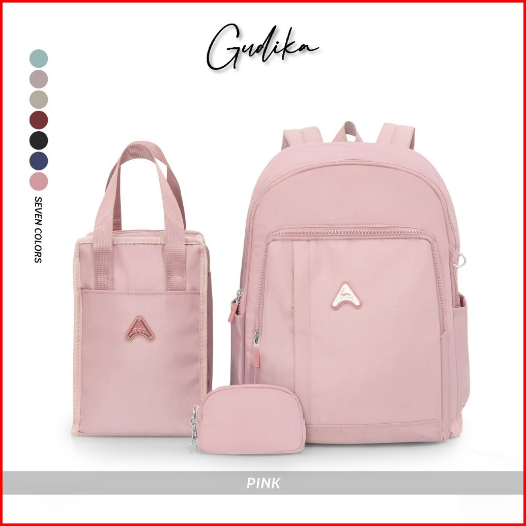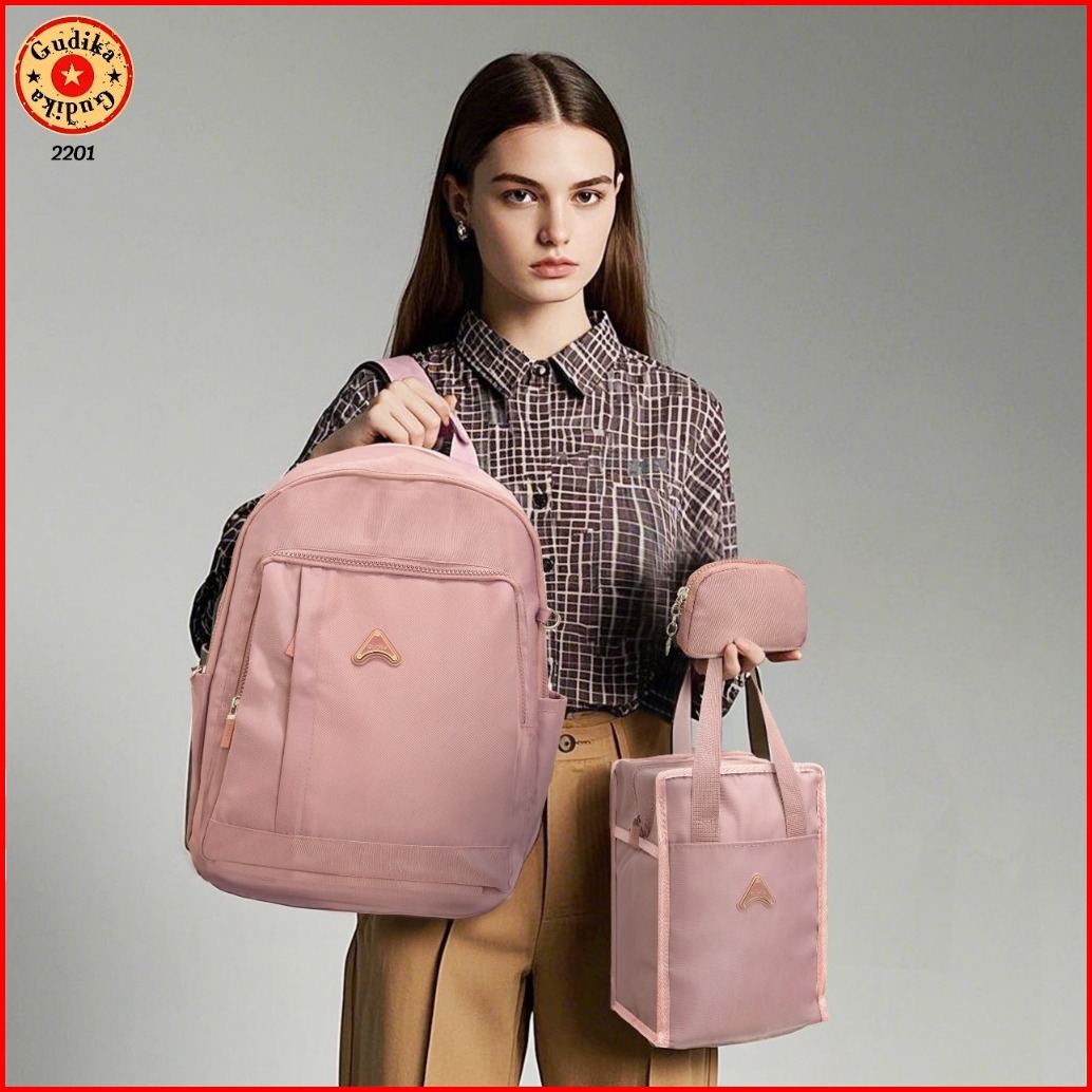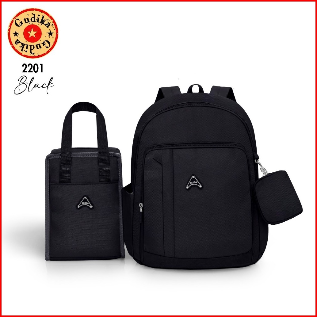 Gudika 2201 Original - Tas Ransel Laptop 3 In 1 Gratis Tas Bekal Pouch Bahan Waterproof Bisa Cuci