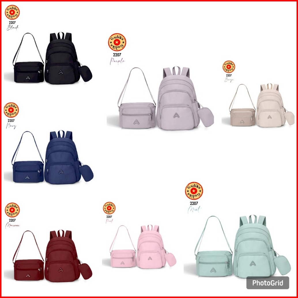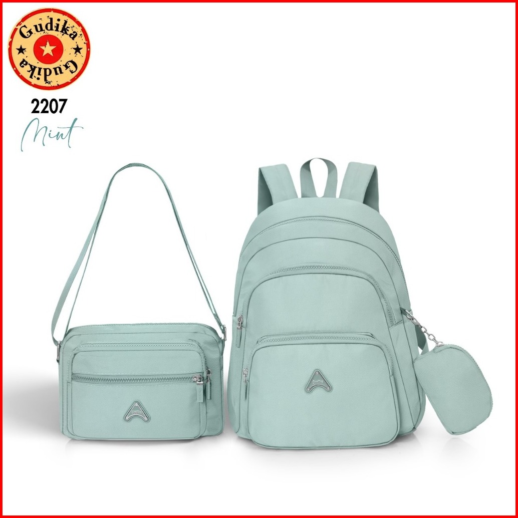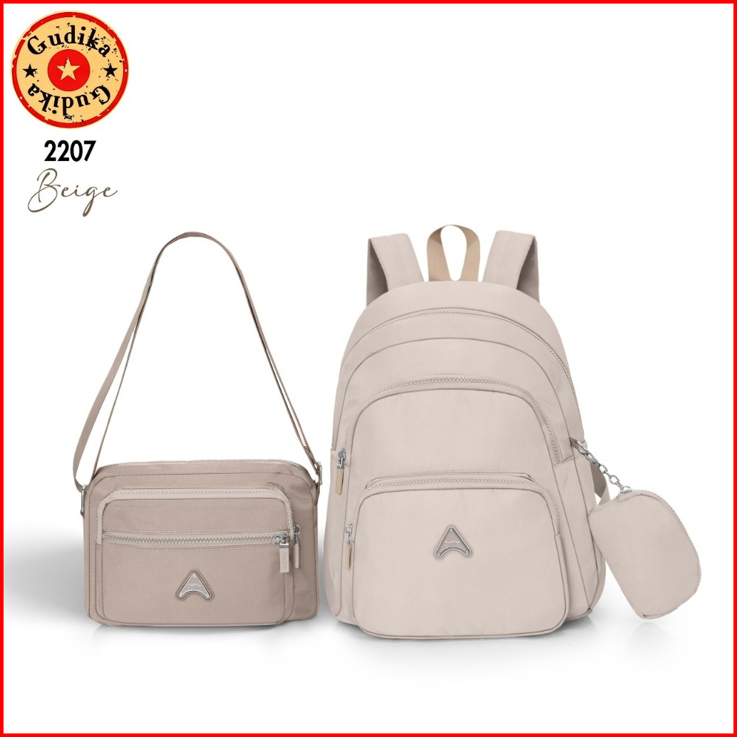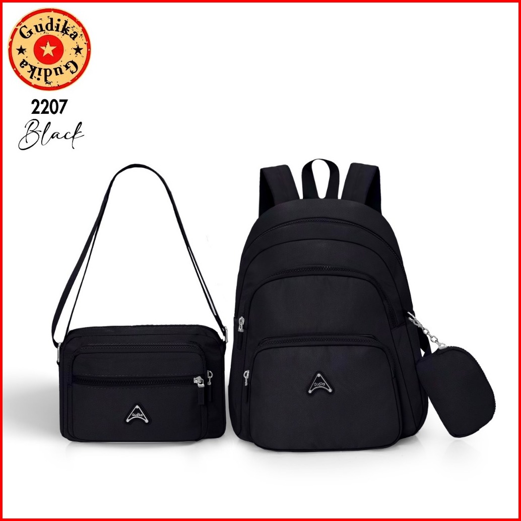 Gudika Bags 2207 - Set 3in1 Backpack Sling Bag Pouch Stylish Praktis Nyaman Untuk Daily Use