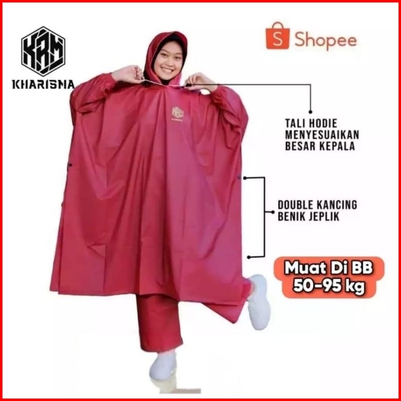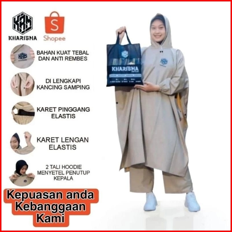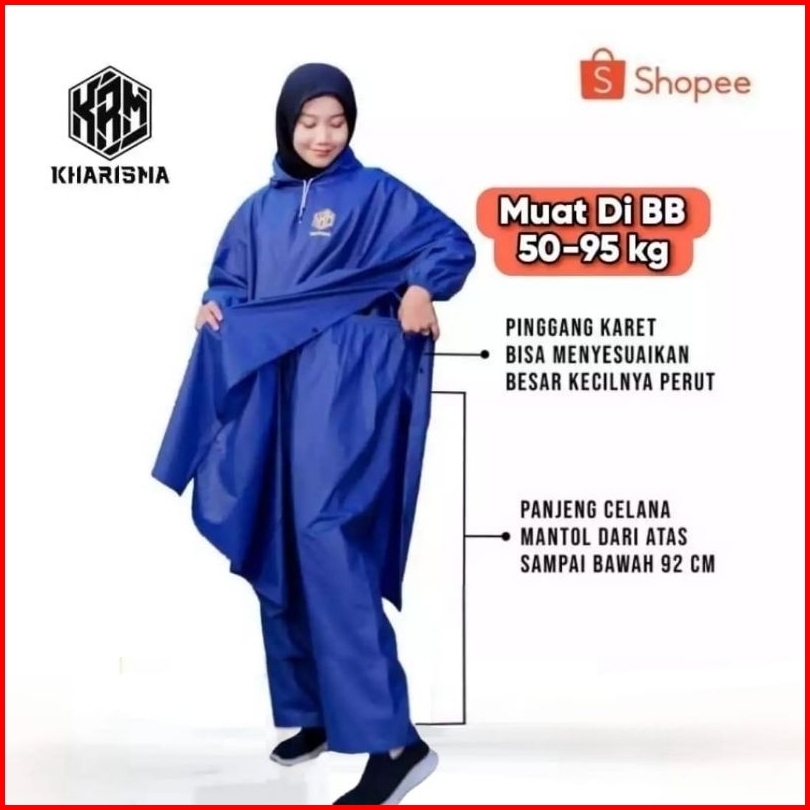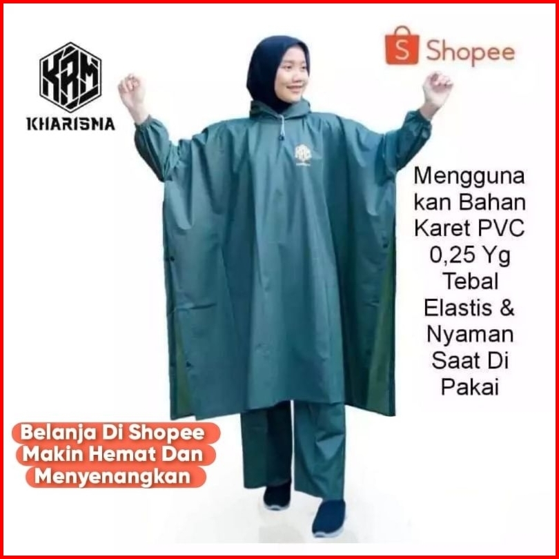 Kharisma Jas Hujan Setelan Celana Jumbo Kelelawar Lengan Anti Rembes